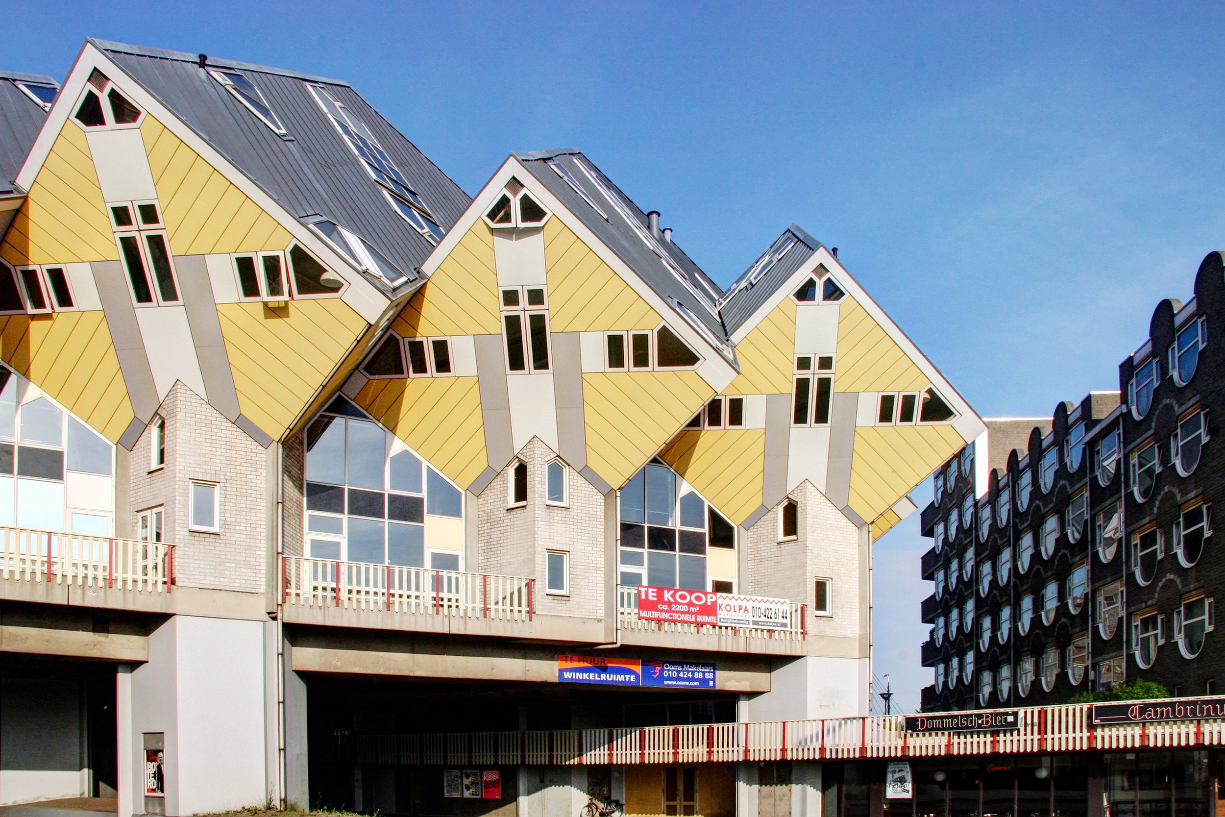 Arguably Rotterdam's most iconic building(s) are the Cube Houses, one of those places to live that looks likes a real pain in the ass to furnish. Designed by Dutch architect Piet Bloom, the houses are part of a bizarre complex that also includes a completely out of place residential tower that looks like it should house a "Medieval Times" dinner theatre.