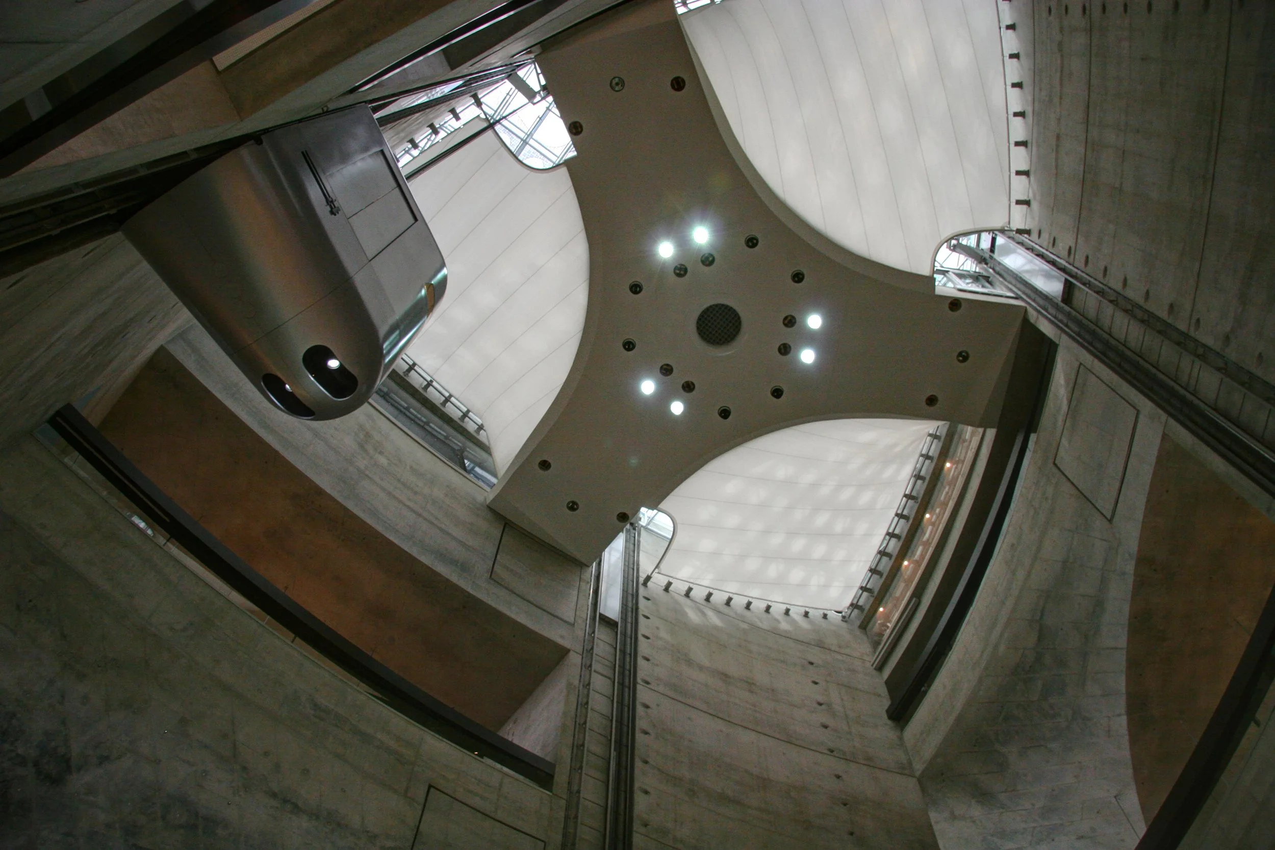 The museum itself is actually a bit confusing to get around. Visitors enter through way cool Star Trek elevators (the interior slit elevator cab windows need to be experienced to be believed) and find themselves at the start of a descending ramp timeline (the Myth). The wrench in such an otherwise simple circulation is that there is then also a not quite parallel vertical exhibition that exhibits vehicles by type (the Collection), in order to see both Myth and Collection you find yourself doing a lot of double tracking, a confusion which is encouraged by a floor numbering system that allows floors 5, 4 and 3 to be on the same floor at the same time. Not the end of the world but certainly annoying at times.