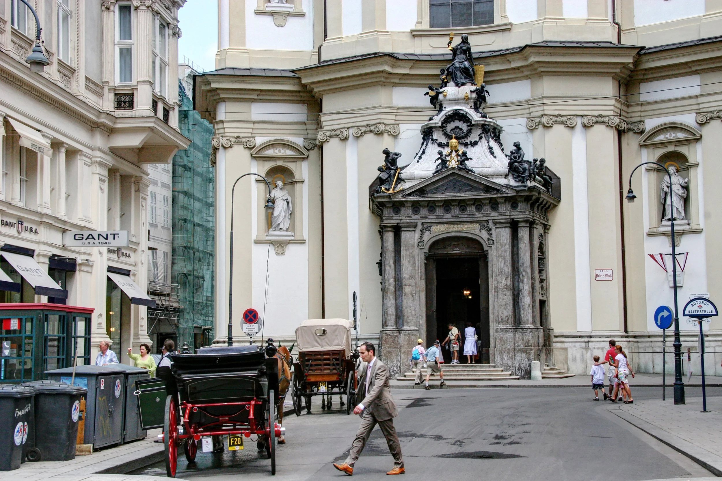 If you can picture a giant wheel with spokes then you should have few conceptual issues with understanding how Vienna works, at least in plan. At its center (as expected) is the city's cathedral, while on its outside is the Ringstrasse- a great tree and trolley lined boulevard containing most of the buildings you came this far to see. Between the Ringstrasse and the cathedral, a series of streets work their way in, with most of them (like the Kartnerstrasse, partially pictured below) becoming increasingly pedestrian friendly as you move past all those statues, fountains and expected international retailers and into its all pedestrian core.