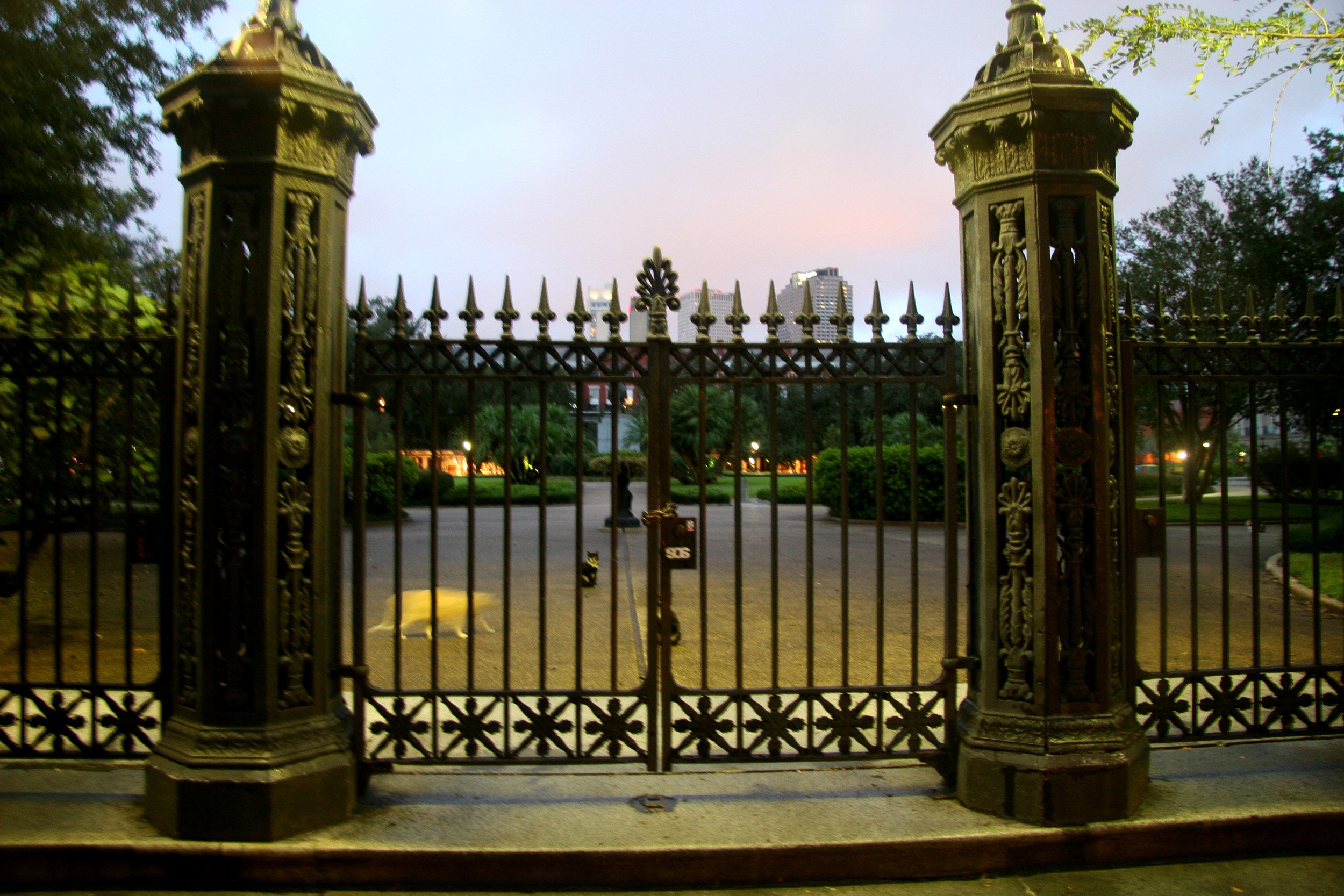 Heading towards a rainy sunset, the gates of Jackson Square were closed and locked for everyone except a disturbing amount of cats (or perhaps a disturbing amount of ghost cats, it was kind of hard to tell).