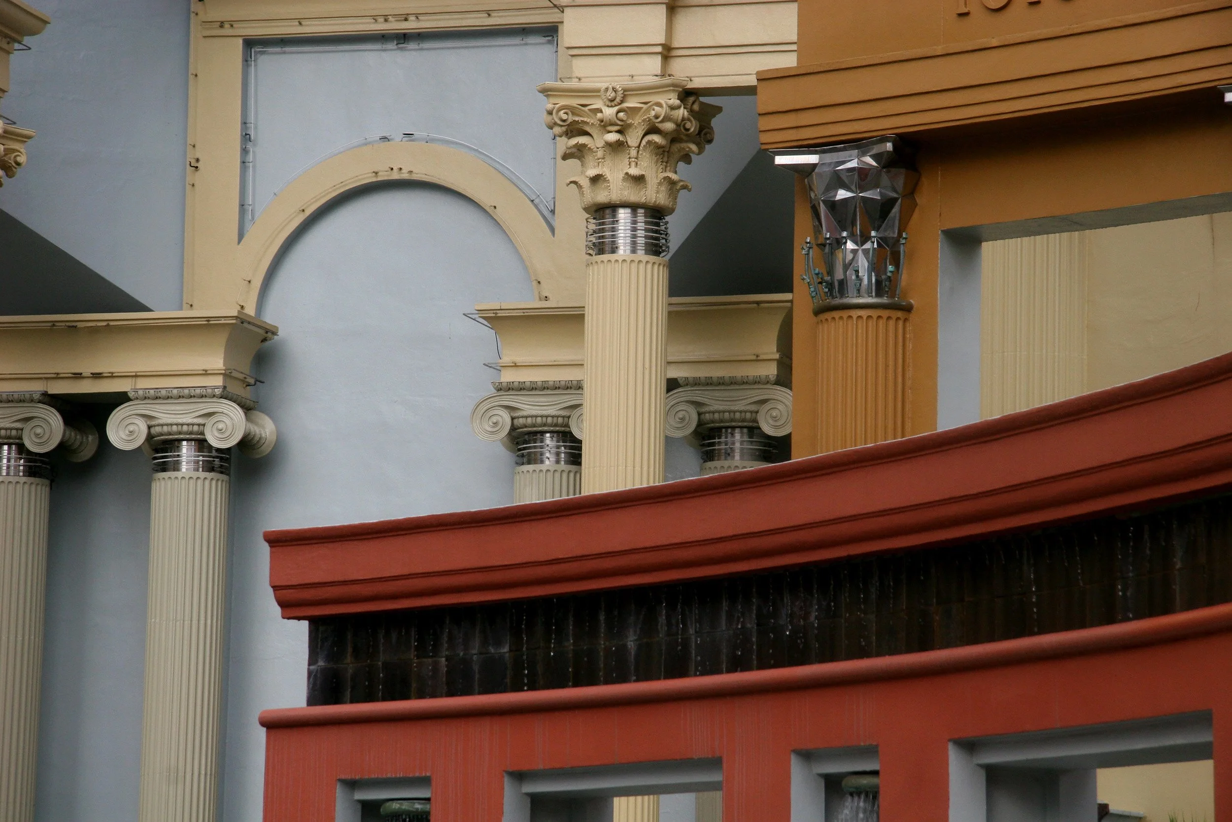 One of the most important buildings in the country in the last 50 years isn't even a building. Piazza d'Italia was designed by American architect Charles Moore in 1978 off Poydras Street in New Orleans, a carefully designed mess of a plaza that is one of the most famous and best pieces of postmodern architecture ever built. On three sides of a plaza, Italian arches and columns (clad in stainless steel and lit with neon) rise to surround a rather involved fountain that sprays off of pediments and falls between piers. At its core, postmodernism was an attempt to use (and translate) the language and symbols and ornamentation of classical architecture but using the materials and lessons of modernism. And even though I am not a fan of postmodernism as a style (I remain a brutalist at heart), I still have to admire just how well designed Moore's recently restored fountain really is. Every detail, every piece of neon, every stainless steel column capital work together and in fact work together well.