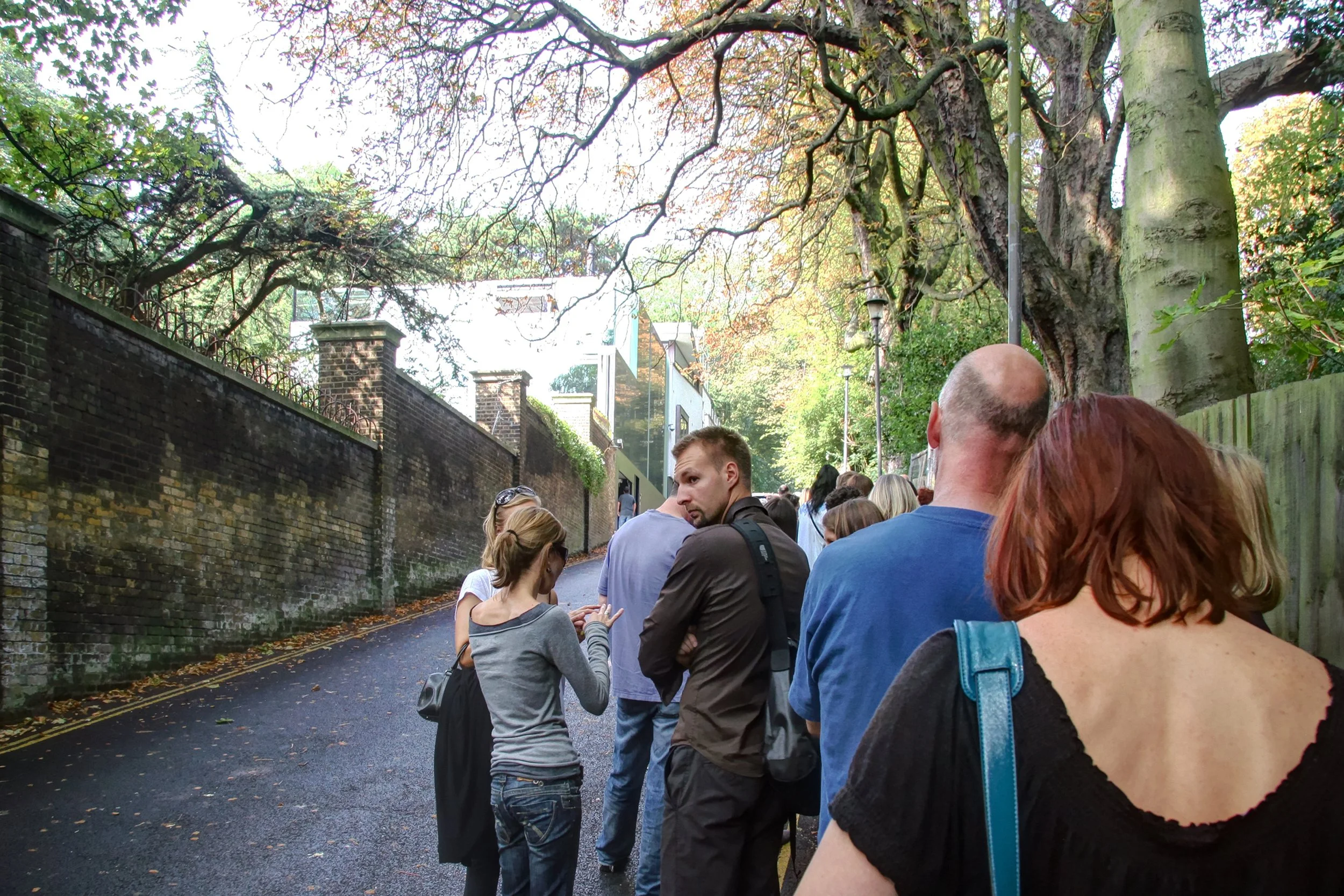 The reason (or more accurately one of the reasons) that I stopped in London was to enjoy the normally closed buildings that were open for the mammoth annual London Open House weekend event. With such success comes some obvious problems, most notably having to deal with large crowds and long lines all over the city at all of the good sites. The first one up (long line and all) is 85 Swain's Lane, a fun modern house located on a great, creepy site overlooking Highgate Cemetery (where an actual non hunchbacked gravedigger toiled during the tours). Located four underground stops past Mornington Crescent (where the possibilities suggest themselves to me), the house was on a quiet street and, unlike many things in this life, actually worth the 90 minute wait to get in.