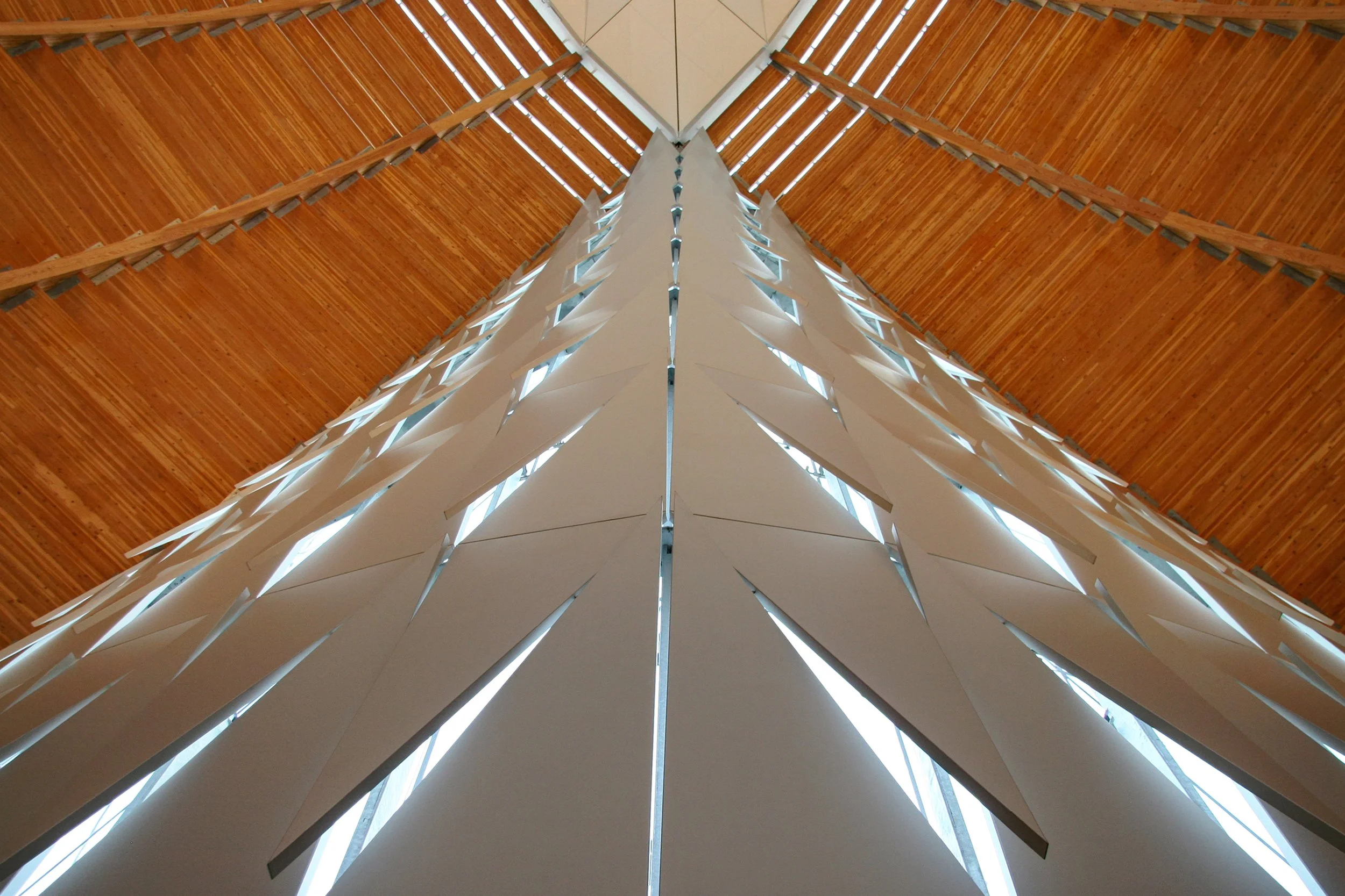 From back behind the altar, layers of wood hide and reveal layers of light, something quite fitting in a cathedral with the word light in it.