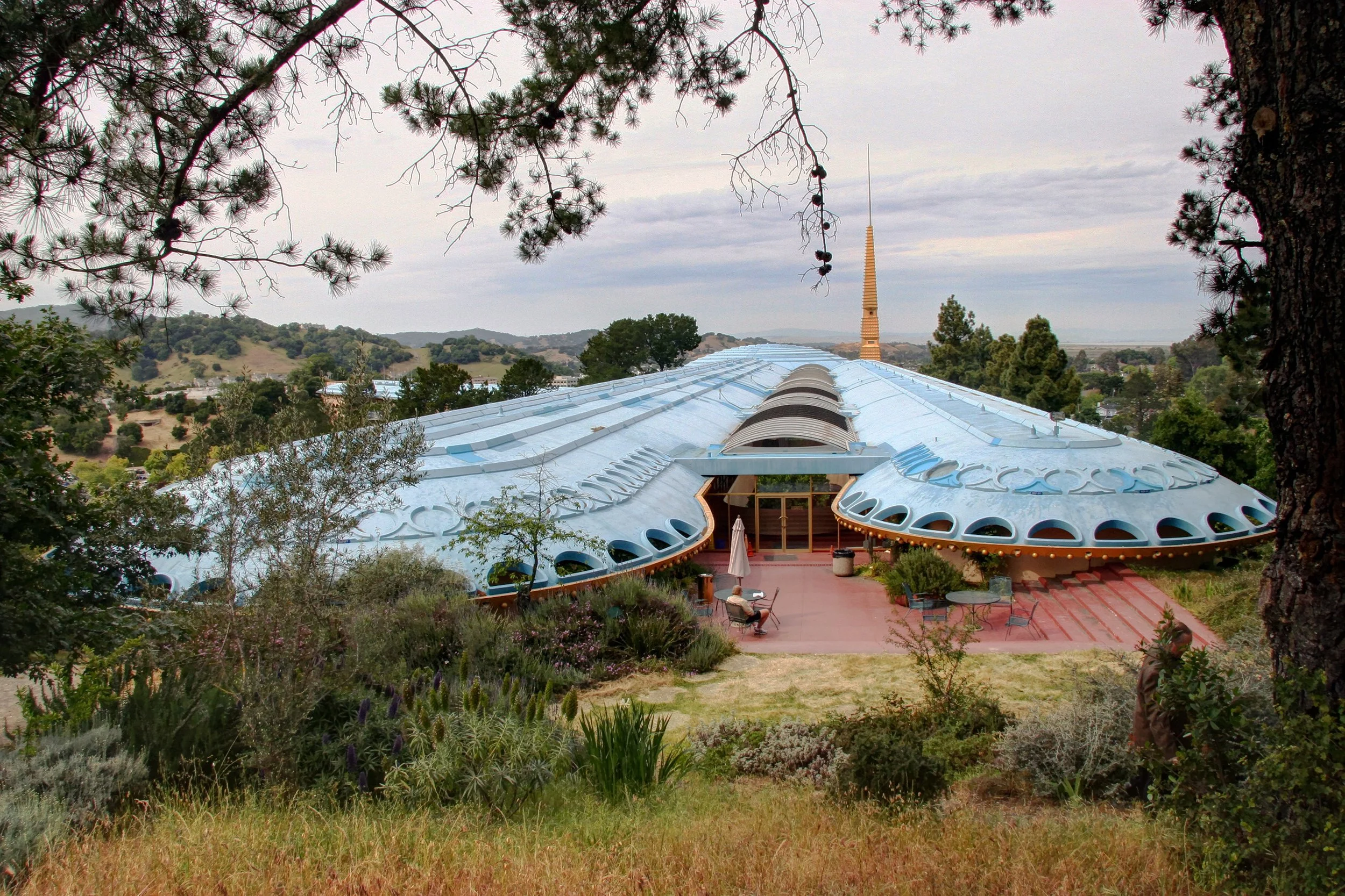 Wright surveyed the site and decided that the building should act as a bridge connecting two hilltops (which it does). He also decided that the roof should be gold to be in context with the golden hills of California, although that idea was scrapped after Wright's death since no one could find a decent gold colored roof tile to achieve the intended effect. In the end the building's pointy tower (which hides a smokestack) was the only part that ended up getting the true golden treatment. Meanwhile the building seems to hover over the site like something from the future, part of the reason that science fiction films like "Gattaca" and George Lucas' "THX 1138" used the building as a location. Not too bad for a building pushing 50 years old to be still considered so futuristic.