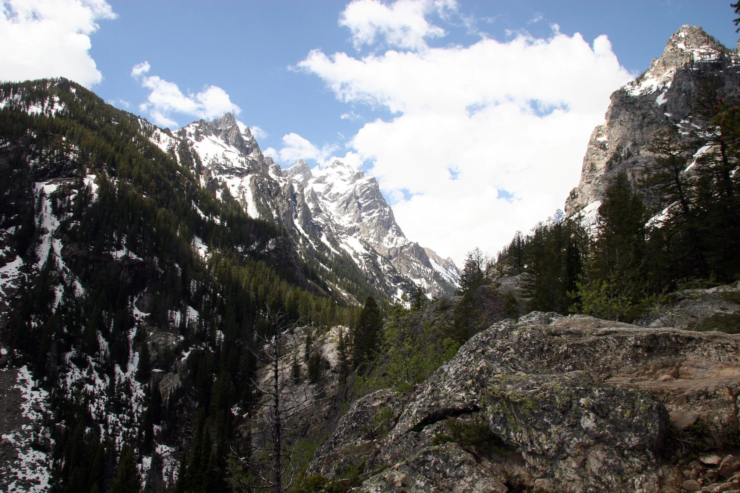 Before the rain and thunderstorms swept the park and valley once again, I enjoyed a quick hike during a rare dry early afternoon. Starting at Jenny Lake (which was thankfully not all that busy since it was still just before high tourist season), I boarded a Park Service boat across the lake to the Cascade Canyon trailhead. Time (and weather) did not favor a longer hike up the canyon, but I knew that I probably had just enough time to hit a few landmarks before the weather turned again. And since hardly any time at Jenny Lake beats absolutely no time at Jenny Lake, I took the opportunity to enjoy what I could, grateful for all that had happened and anxious for all that would come next.