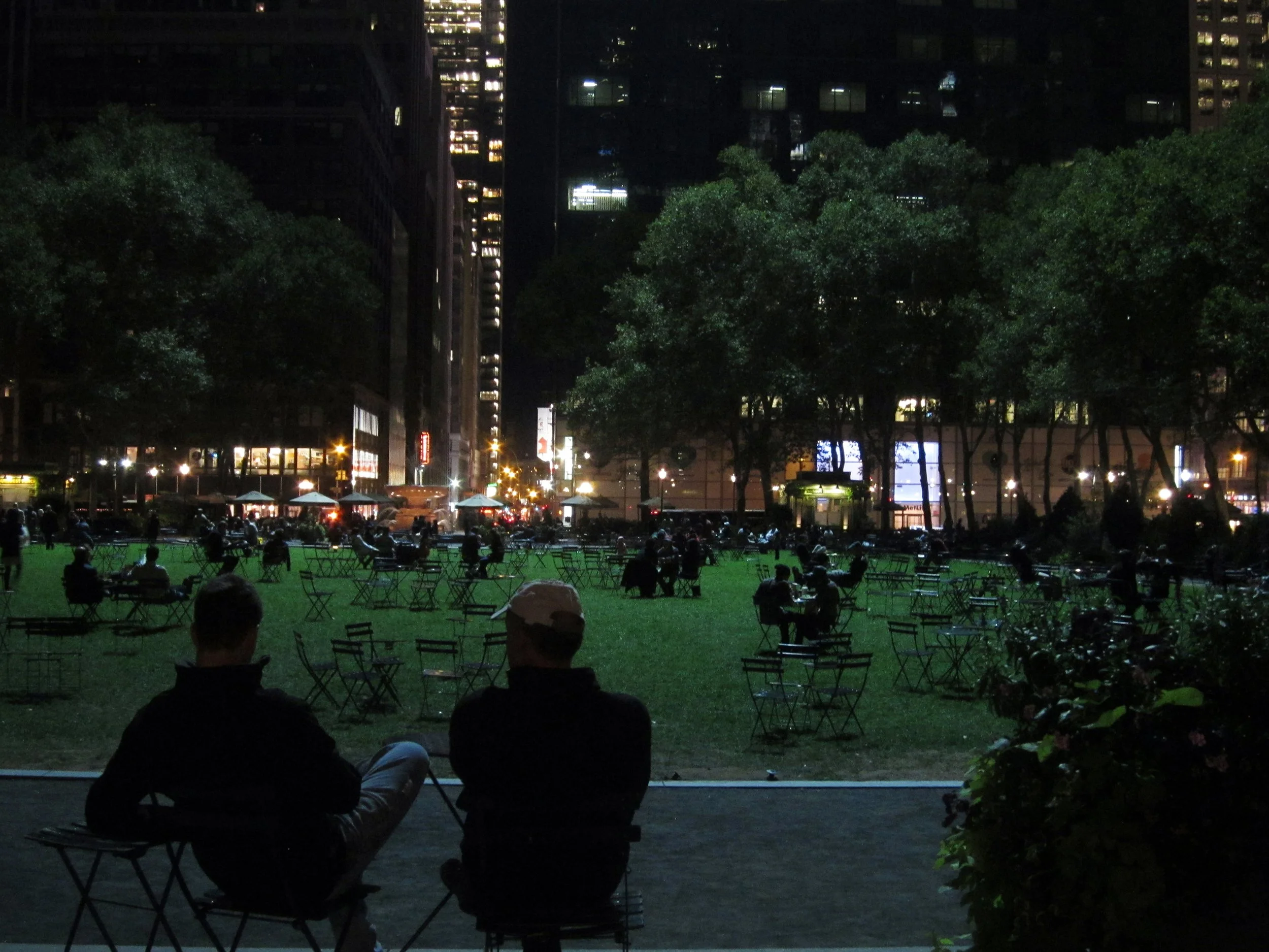 The last pictures from this year’s Open House New York weekend event are from a night lighting tour (at 7:30 PM, not too late) of the brand new Bank of America Tower. The tour touched on the lobby design but then spent most of the rest of the time in Bryant Park, where we learned that all the top floors were fake and just hiding mechanical equipment, but were lit to look like floors. Pretty sneaky if you ask me.