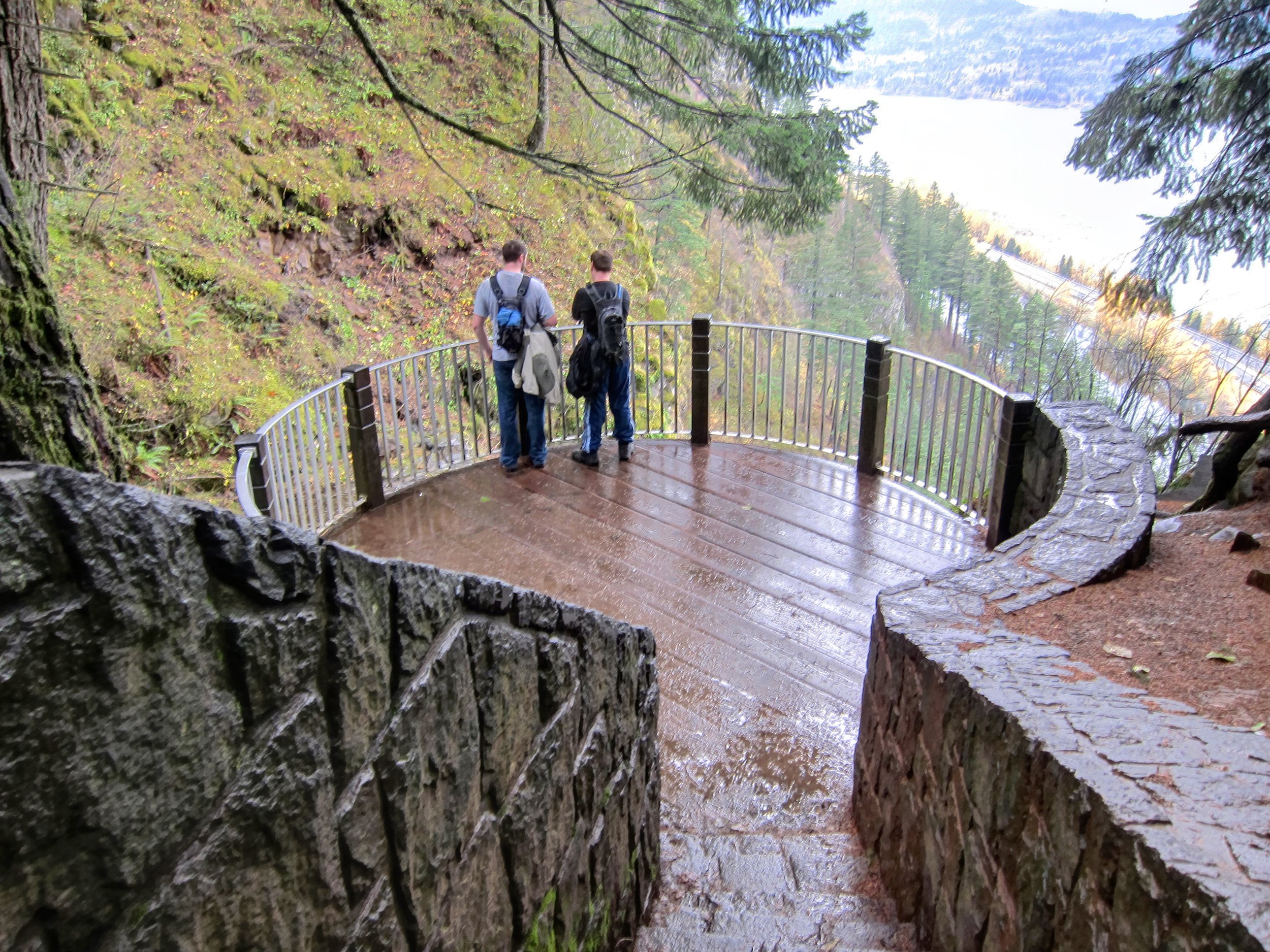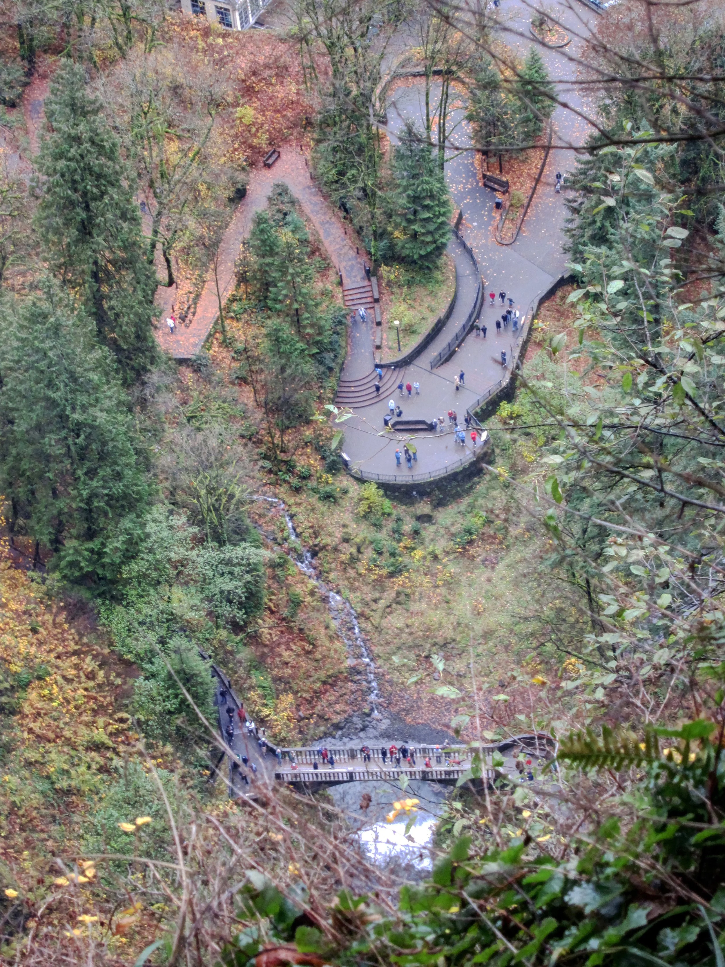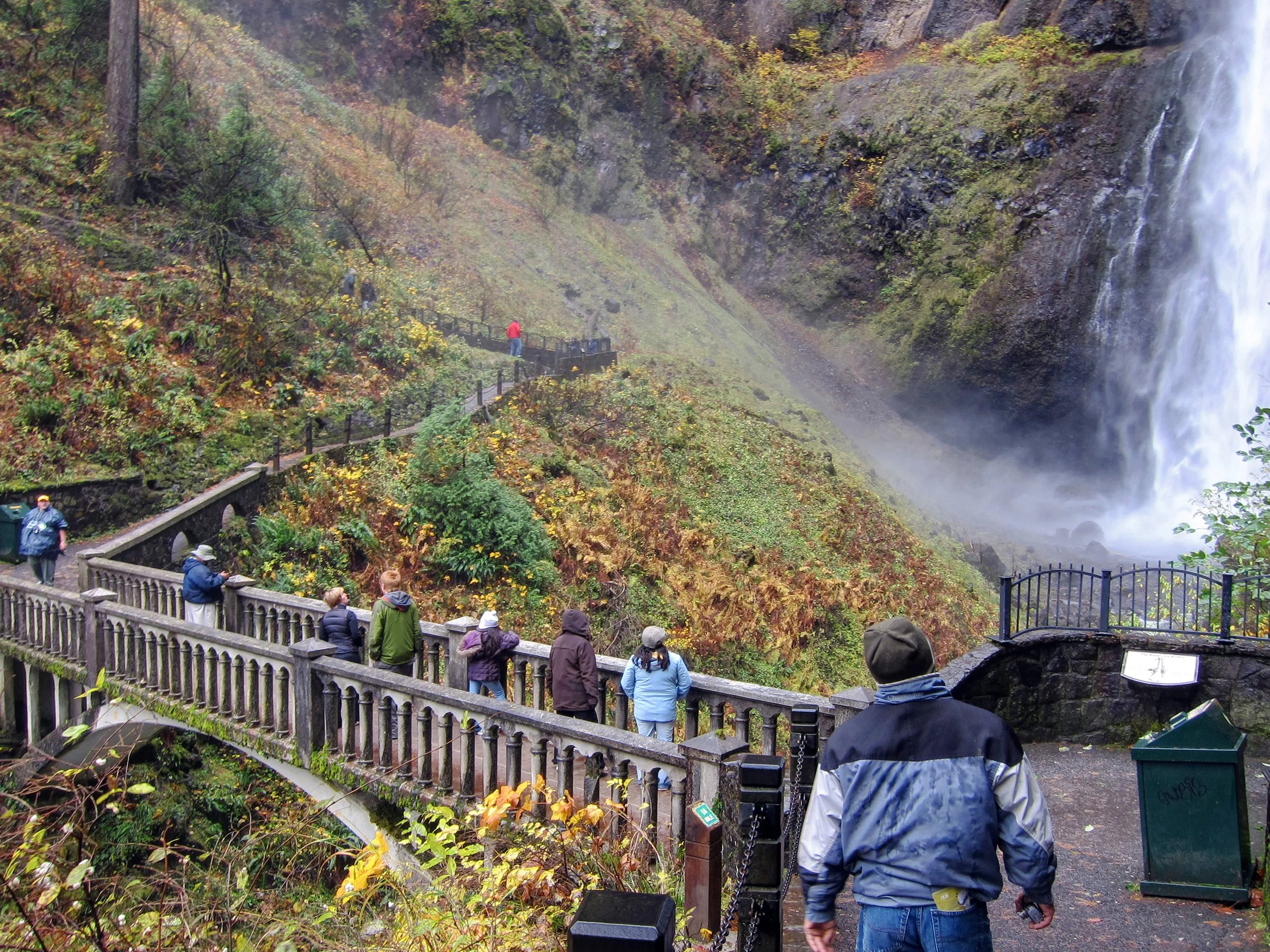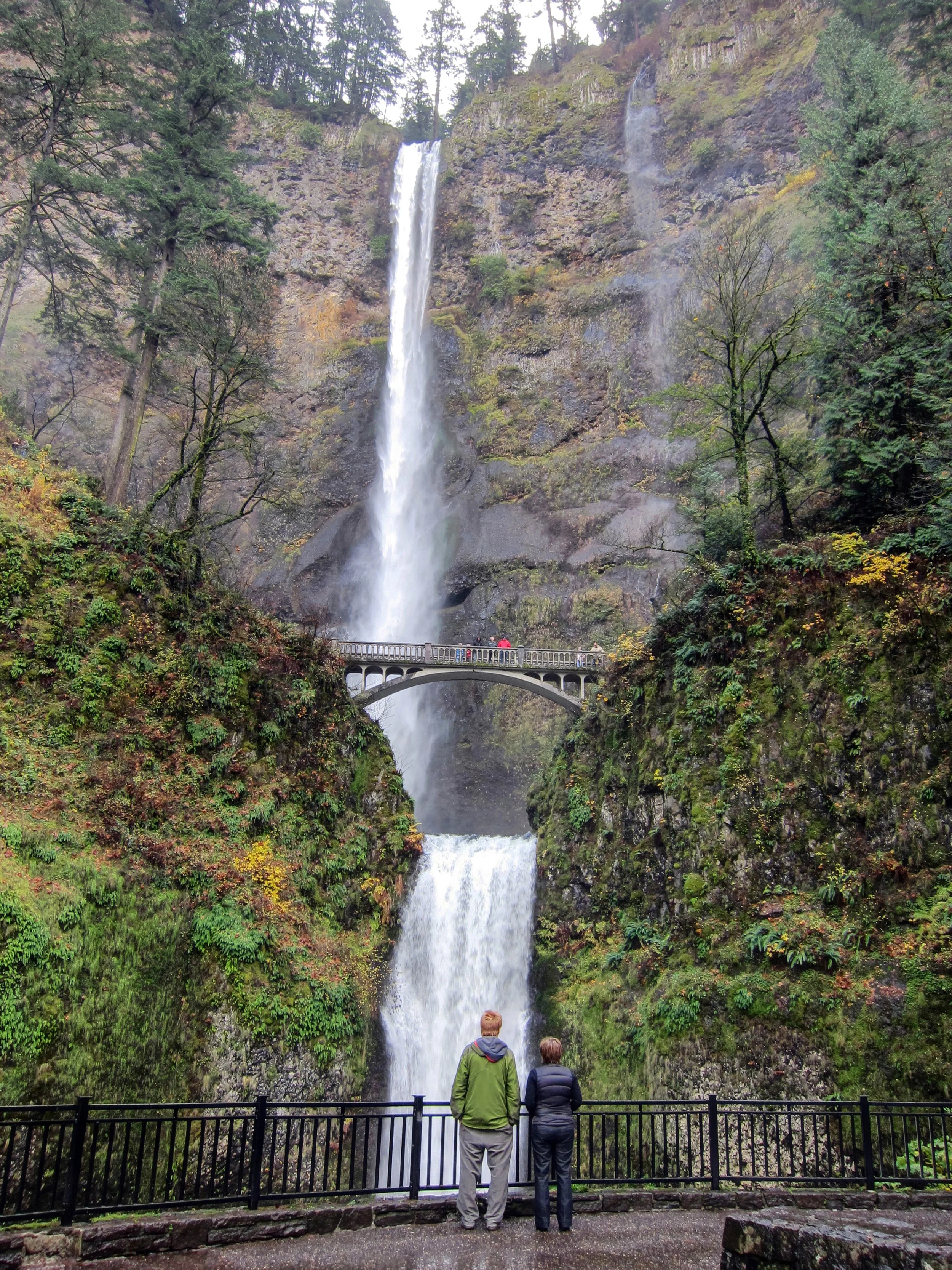 Of course before you climb the balance of the trail you get to cross that perfectly sited concrete bridge (the one that puts Multnomah Falls a level above all of the other Columbia River Gorge waterfalls), where the rushing water from the upper falls most certainly makes its presence known. Bring a raincoat if you go.