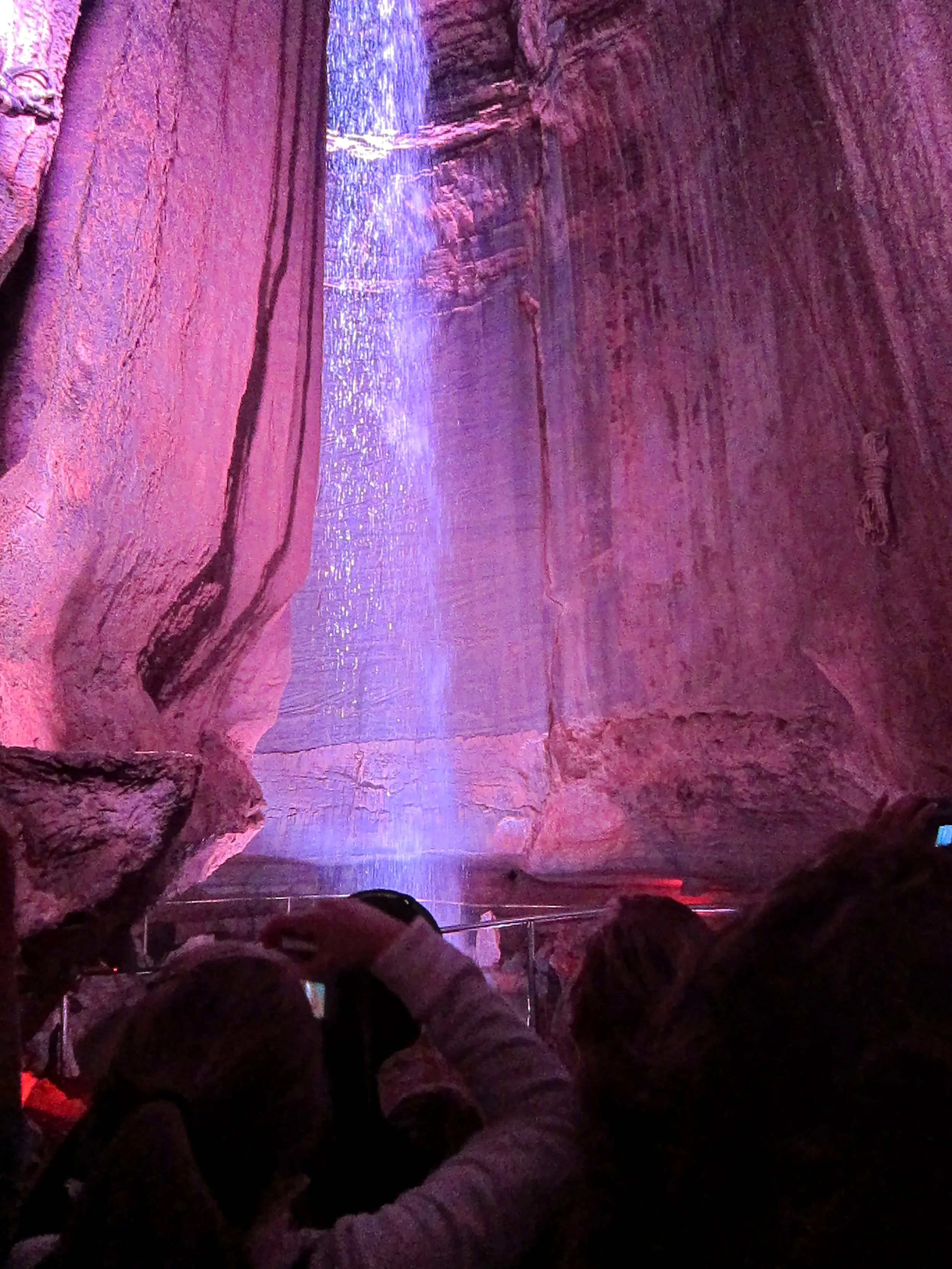 There is more to Lookout Mountain (near Chattanooga, Tennessee) than just seeing Rock City. There's a great little National Battlefield Historic Site (the high ground was a good way to protect the city from northerners like me) and then there's Ruby Falls, a roadside attraction deep inside the mountain. Regular guided tours take the elevator down and spend about an hour and a half (or so) traversing rather tight little caverns until you see what you came to see in the first place. To build the drama, you first enter a rather dark cavern where you know something is going on, things like a much higher ceiling (you can really start to feel volume down there) and more importantly the sound and feel of rushing water start to clue you in that you're near the falls. Then the tour guide flips a switch and cheesy triumphant music starts and colorful lights turn on- and while that cheesy triumphant music is almost always unwelcome, the initial revelation as the colorful lights first turn on is actually quite impressive, although of course it's not nearly as impressive as the cavern chamber and falls themselves.