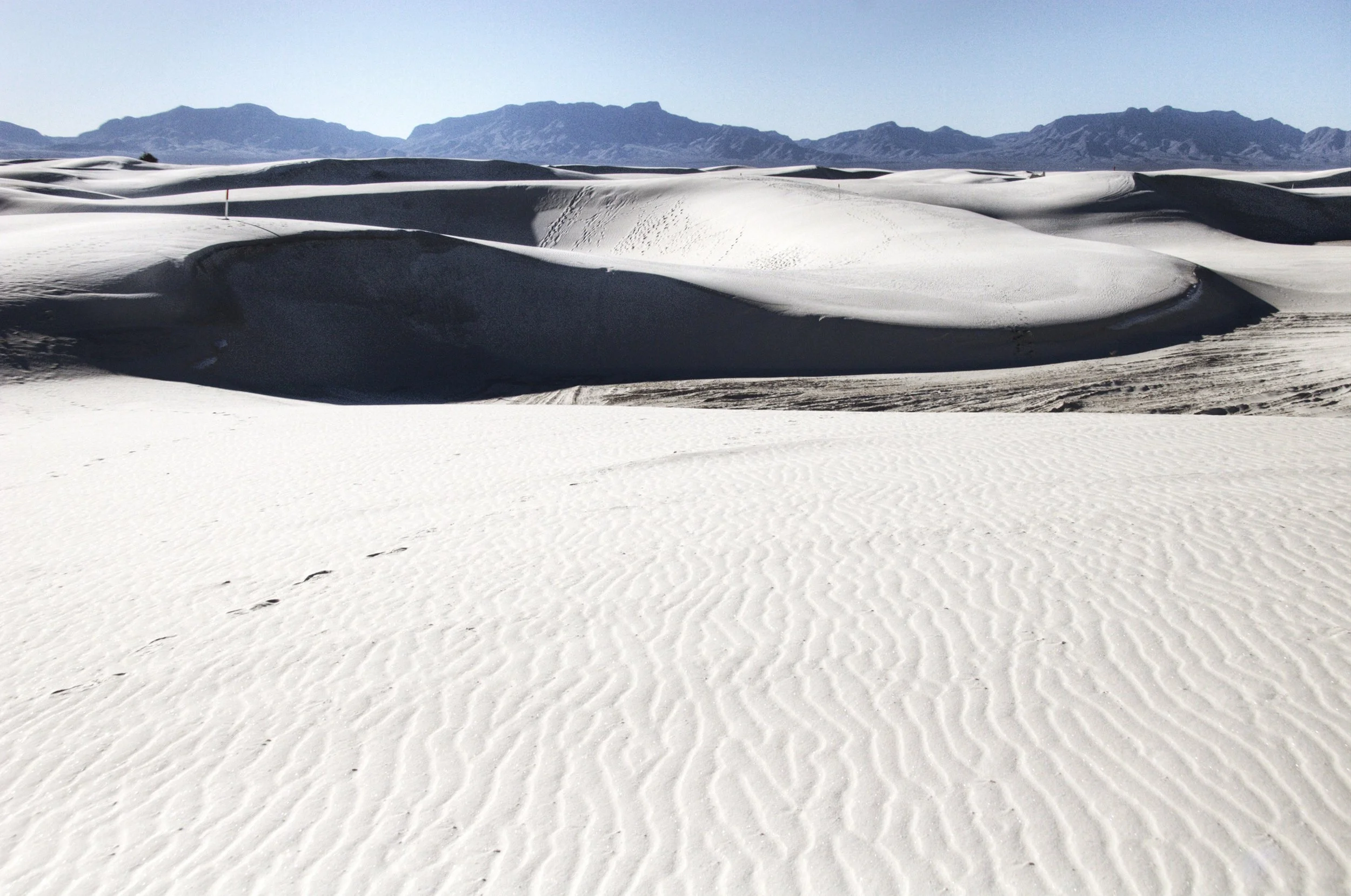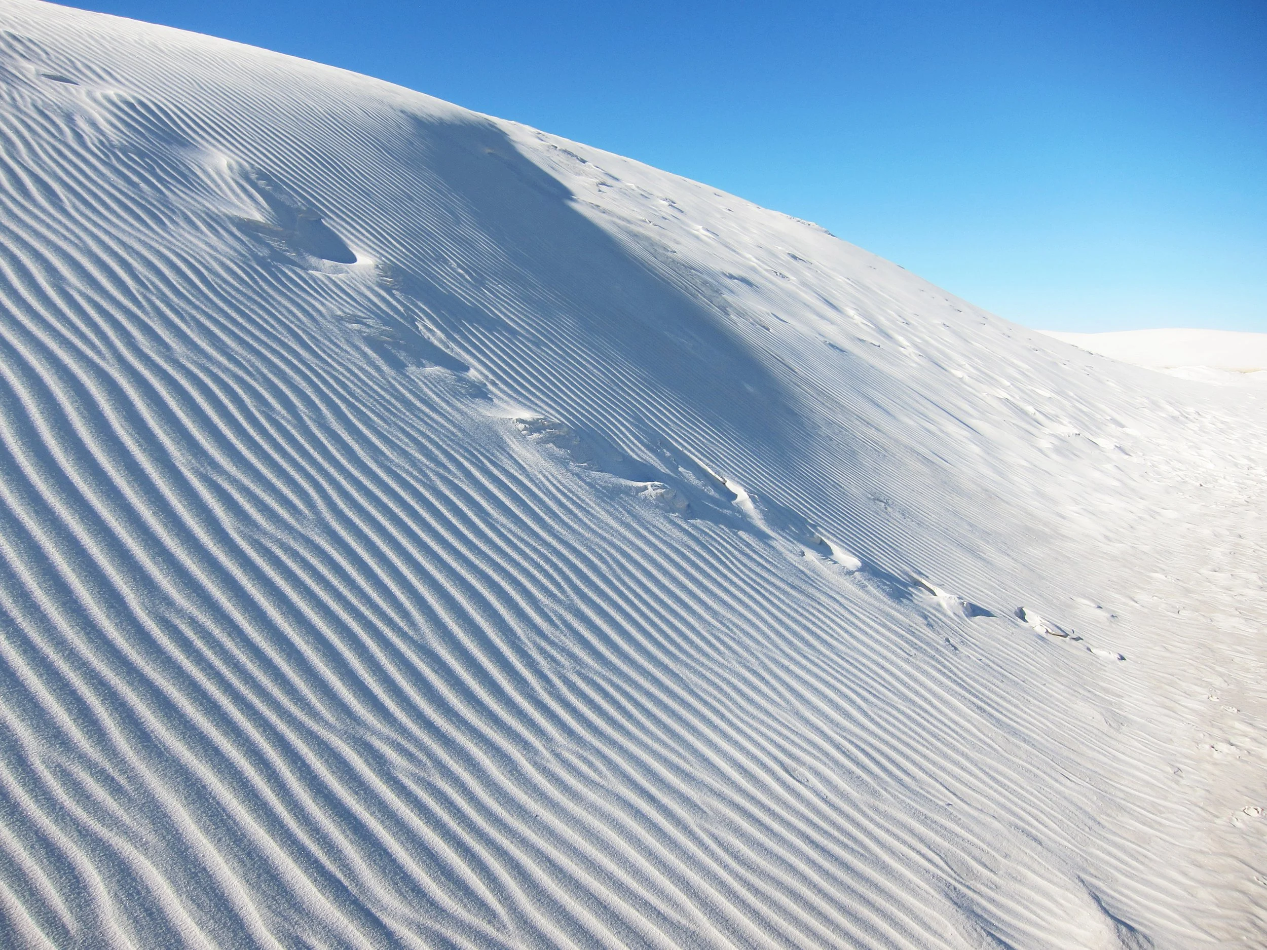Imagine if you will a desolate alien landscape, with white sand dunes covered in abstract patterns in all directions, a disorientating other worldly reality stretching in all visible landscapes. If you can imagine that then maybe, just maybe, you can picture what it was like at White Sands National Monument, a really amazing park that is often closed when the US Government recklessly attacks it with missiles (the park is literally surrounded by the White Sands Missile Range and is closed during testing). The farther you drive in the more amazing it gets and (unlike the killjoy park rangers at most parks) you're allowed to park where you want and explore and walk all over the dunes wherever you want. You can follow your footprints back to your rental car safe in the knowledge that while they might get you back to your car they won't last long- wind shapes and reshapes amazing patterns throughout the dunes, a close up marvel in a landscape where things like scale are otherwise non existent.