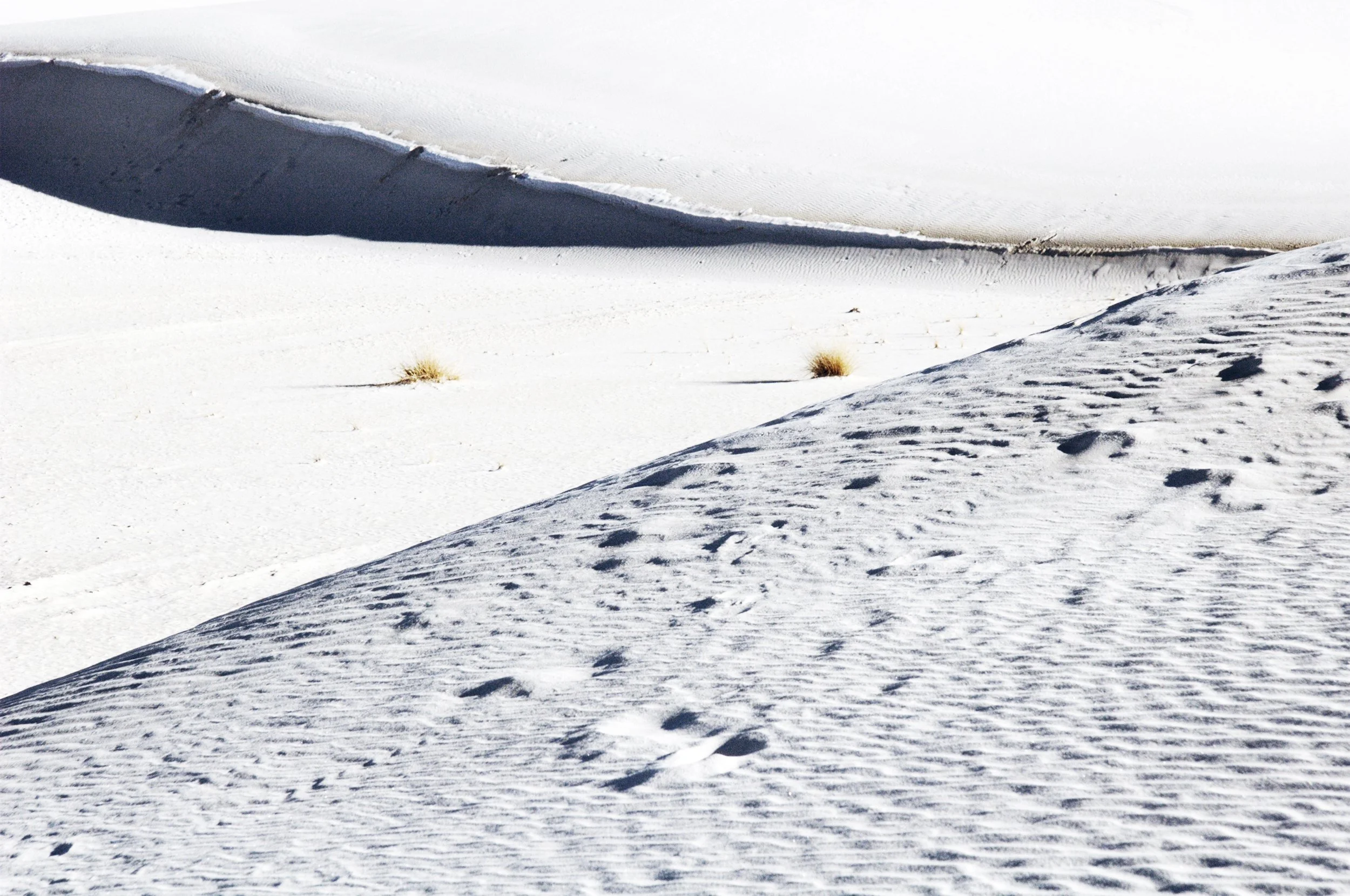 Another few views of all that white sand, this time along a loop trail into the back country, where high orange poles mark the trail and footprints are everywhere. Unlike most short day trails, this one included a sign in/sign out sheet at the trailhead- a smart precaution since it is very, very easy to wander off the trail and find yourself totally lost fairly quickly, all in a park and area desolate in its setting, completely without cell phone coverage and prone to sudden closures because of incoming missiles.