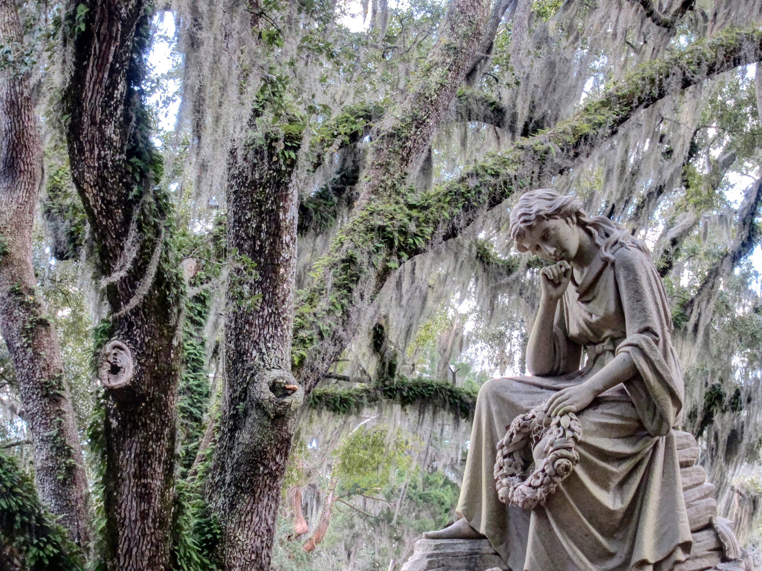 As nice as Savannah is (and there is no question that it is nice) my favorite place there was filled with dead people. Bonaventure Cemetery is a drive from downtown but easily worth it, a place filled with statues and hanging moss and death, all working together for the greater good.