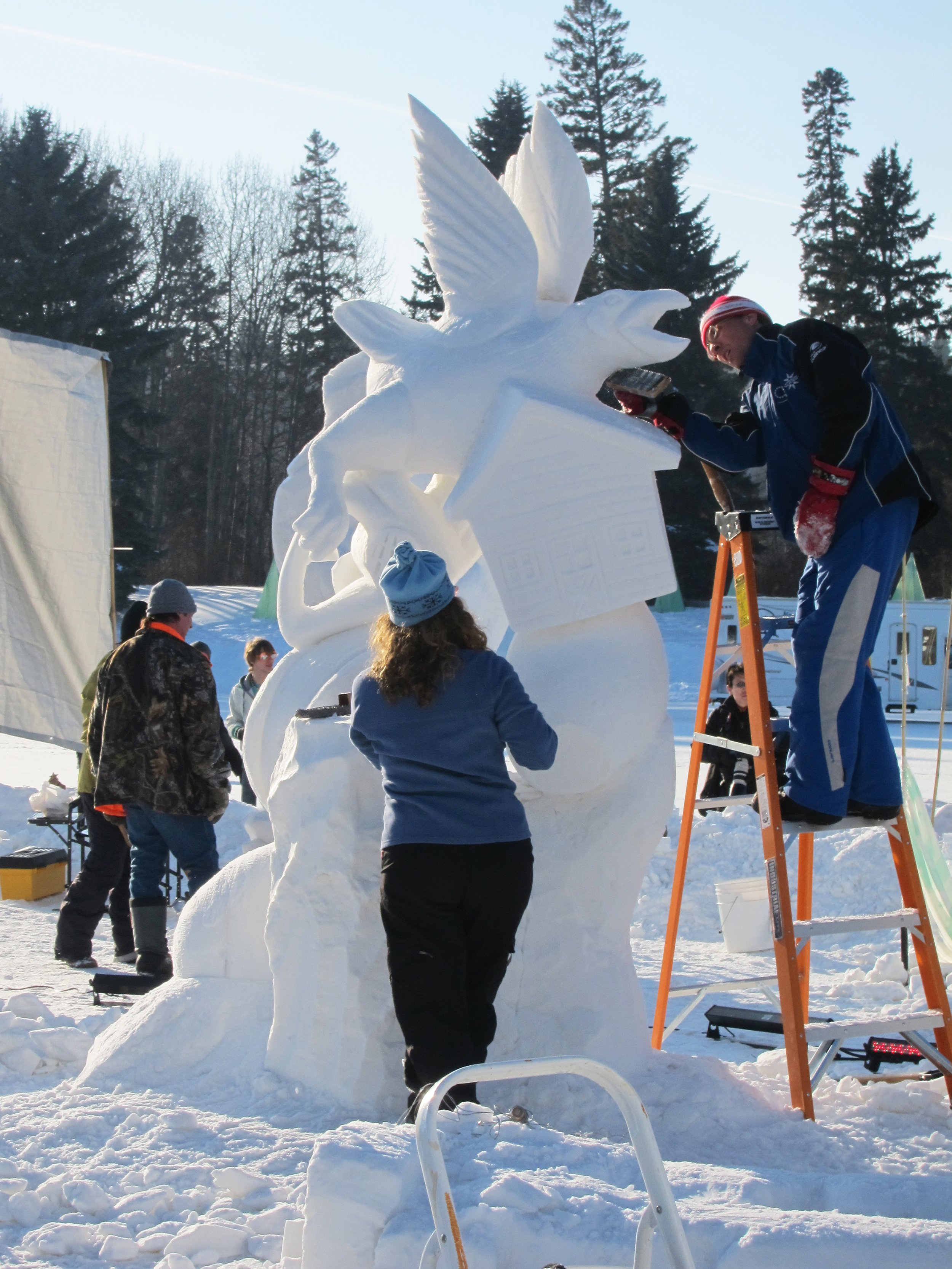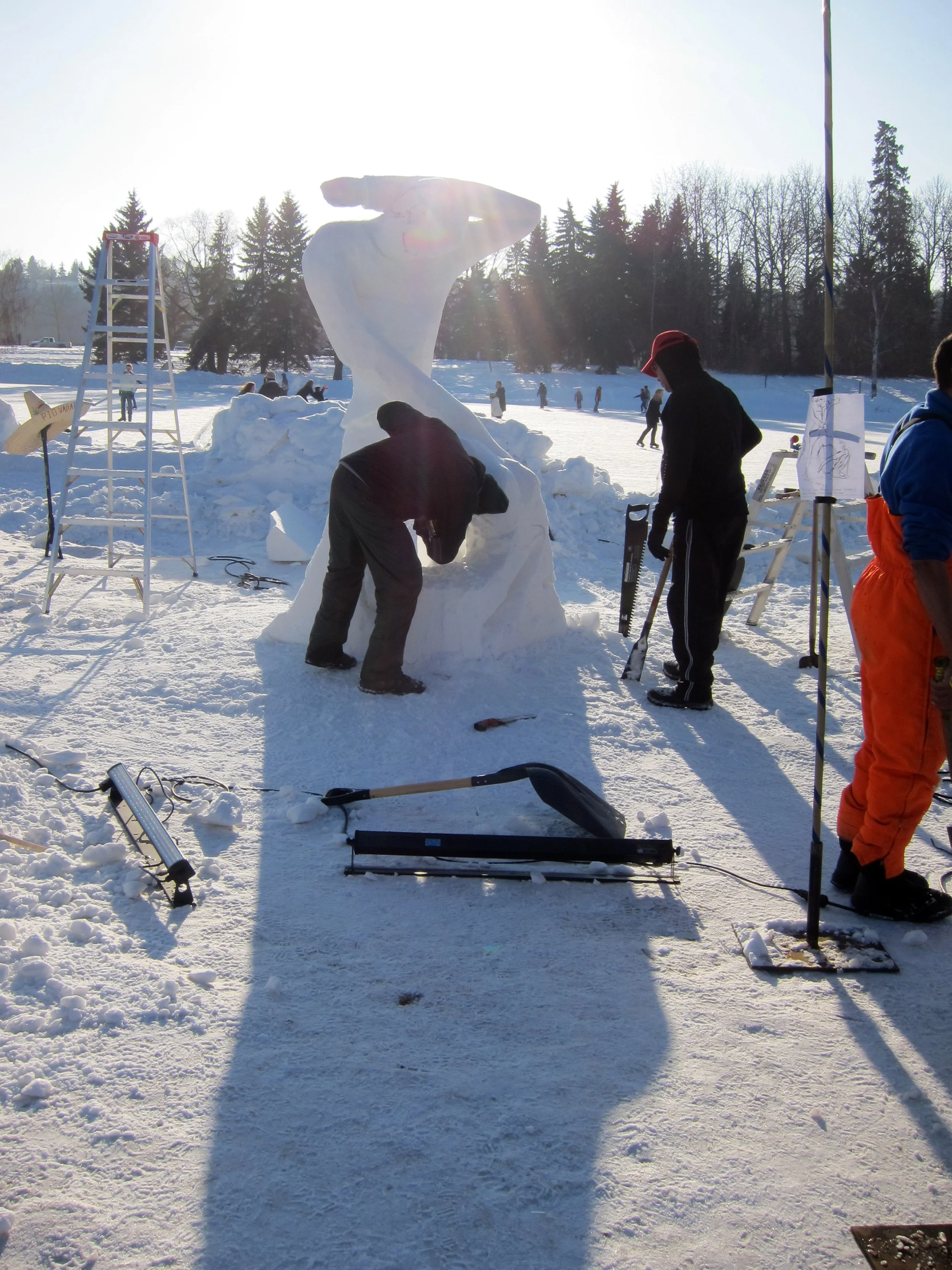 When I was on my site visit (the actual work related reason I was in Edmonton) I asked the locals about things to do in Edmonton. Most looked at me like I was insane and talked about how things were better in Calgary or Vancouver or Toronto, an odd answer considering how many fun things can happen in Edmonton in February. The weekend I was there just happened to be the annual Silver Skate Festival, a literal winter wonderland of ice skating races, horse driven sled rides, oil can curling (!) and an amazing snow sculpture contest. Fantastic fun.