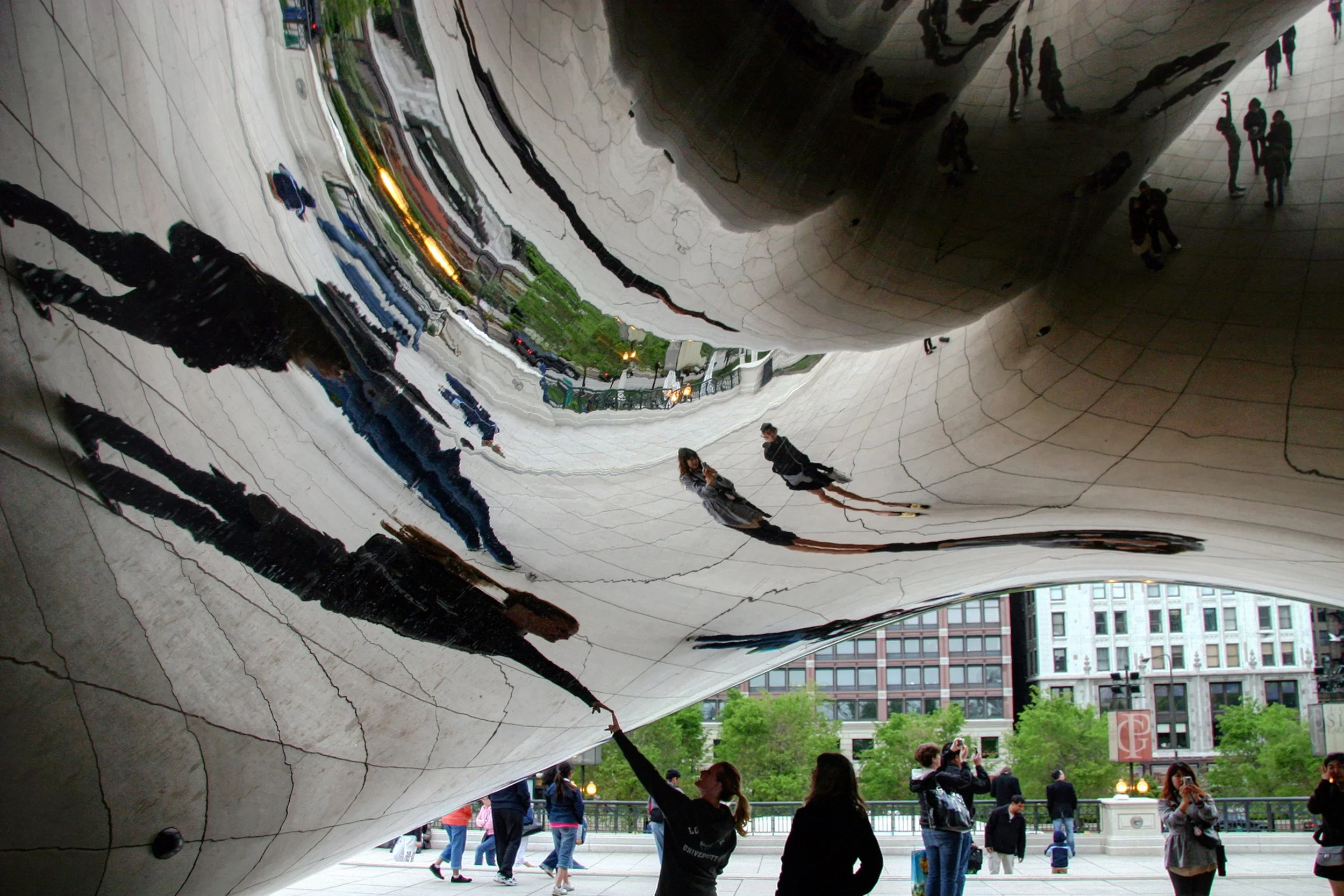 Anish Kapoor's Cloud Gate sculpture is just infinitely fun, one of those things you need to see and walk around and get lost in, a great experience and one that's impossible not to love. One of these pictures is a self portrait, I'm the one that looks like me, and the other guy that looks like me, and the other other guy that looks like me. Once you get underneath (where this picture was taken) reflections of reflections of reflections start taking over, all distorted and all warped and all (again and again) way more fun than they should be.