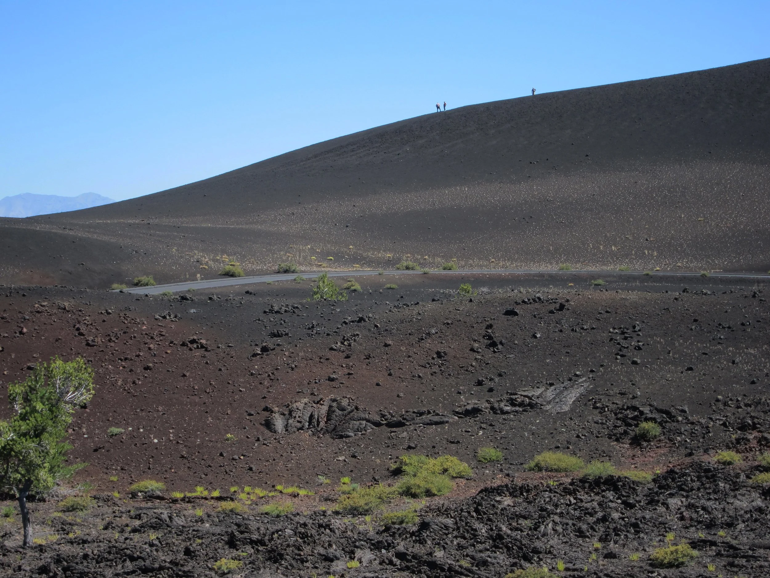 With that map, I spent today (or at least most of today) driving all around Idaho, a fairly big state, especially by local East Coast standards. From Boise (where my hotel is and where my flight home leaves from) I headed hours and hours (ok, about three hours) east to see Craters of the Moon National Monument, a place where it looks like the lava just cooled even though it's been a few thousand years since it's seen any action. At the park they have nonstop fun with plenty of black rocks, a steep ass cinder cone you can climb up, and more than one decaying walk through lava tube. Fun.