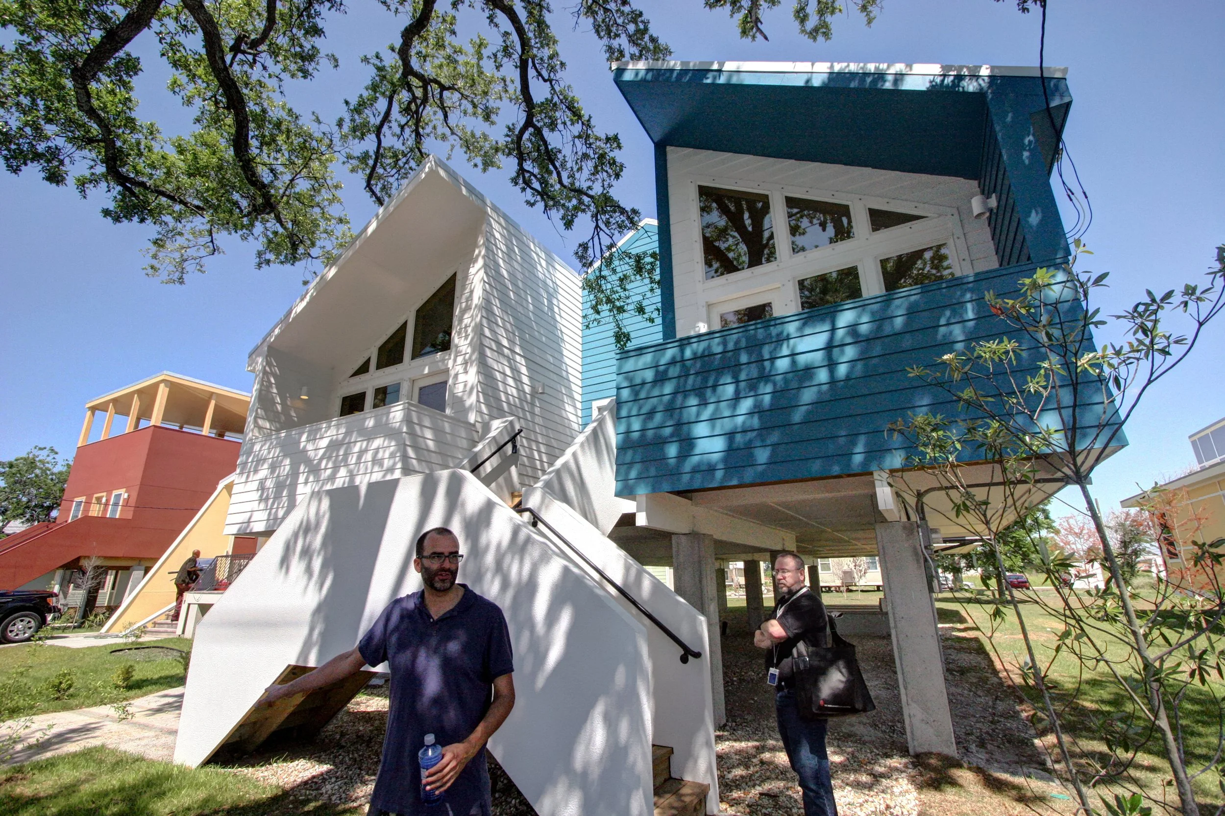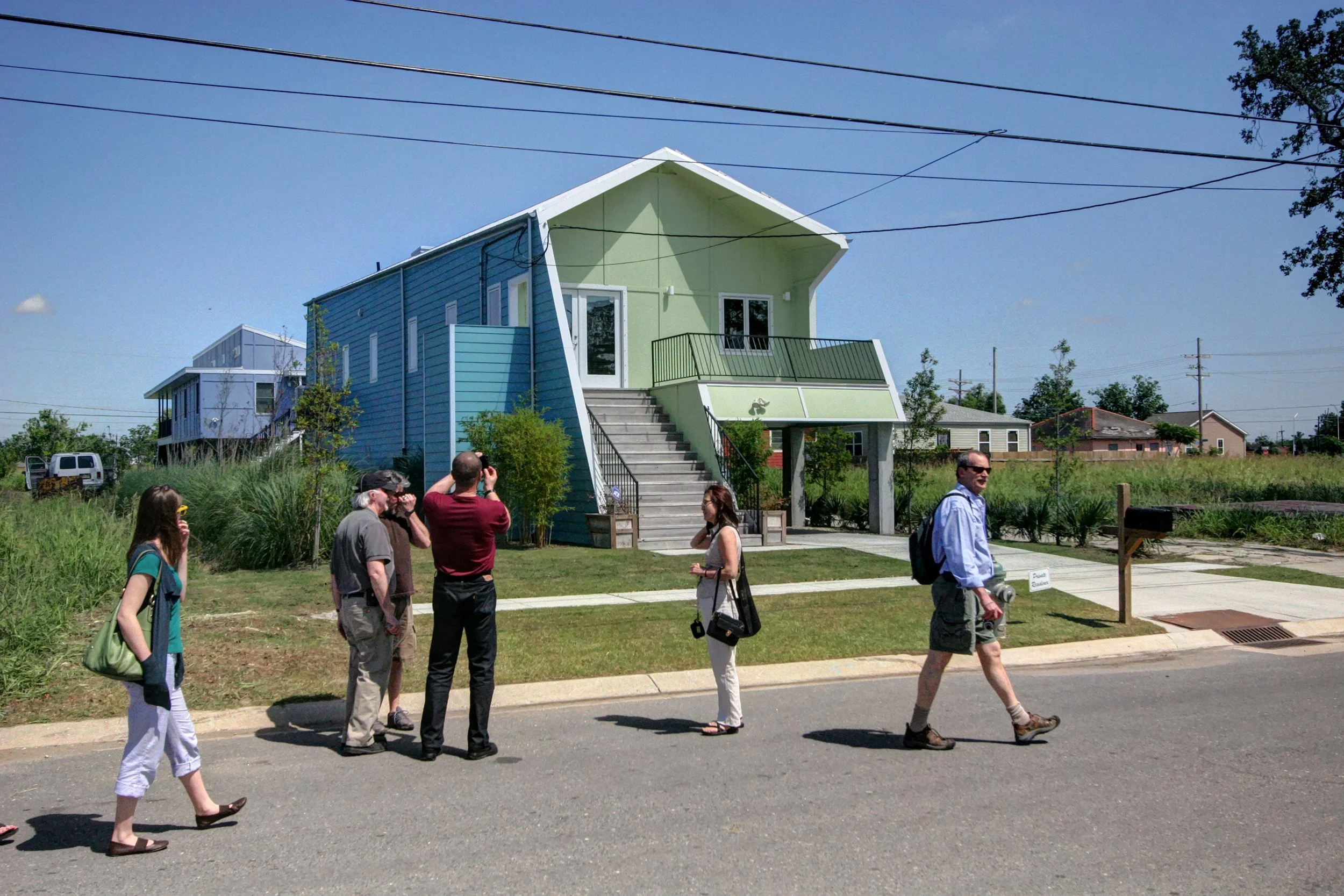 Of all of the available (non self guided) tours at this year’s AIA Convention, the star attraction was ET113 Katrina Recovery (“ET” stands for Educational Tour by the way). It focused on projects in the Lower Ninth Ward, and included a tour of the Make It Right Houses, a star studded project, First off, the charity itself funding the project was founded by Brad Pitt, and the architects involved included Shigeru Ban, Frank Gehry, Thom Mayne, David Adjaye and MVRDV, among others. What’s not to be excited about?