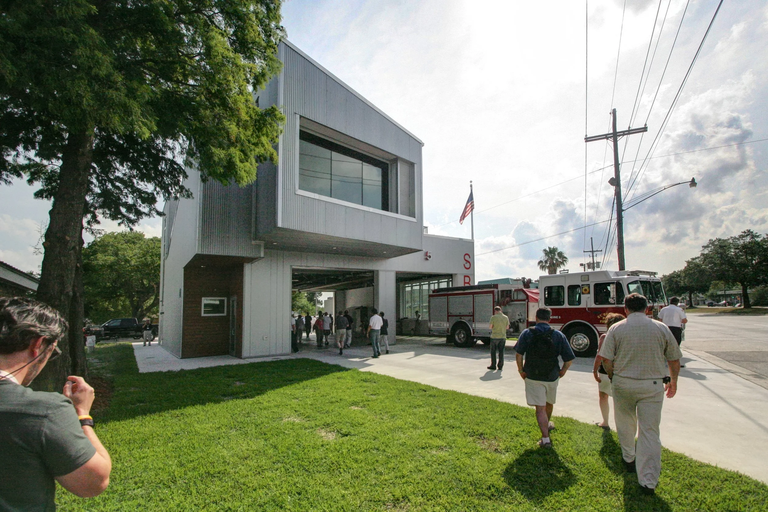 Another Katrina recovery tour was ET123 St Bernard Parish, which is the area east of New Orleans, pretty much everything in that direction between the city and the Gulf of Mexico. The tour focused on new public buildings and was also kind of sobering in that the designs anticipate massive catastrophic flooding events and all of the subsequent related problems will happen again and again in the future. One example was a tour of a public school where everything (other than loose furniture) was designed to be cleaned with a high pressure hose and able to survive standing water. Additionally we visited firehouses that had the same, high pressure hose finishes on the lower floors and everything important (including the electrical equipment) upstairs. And those nice, generous balconies aren’t so the firefighters can relax, they’re meant to act as place to dock your boat during flooding so that the firehouse can remain operational.