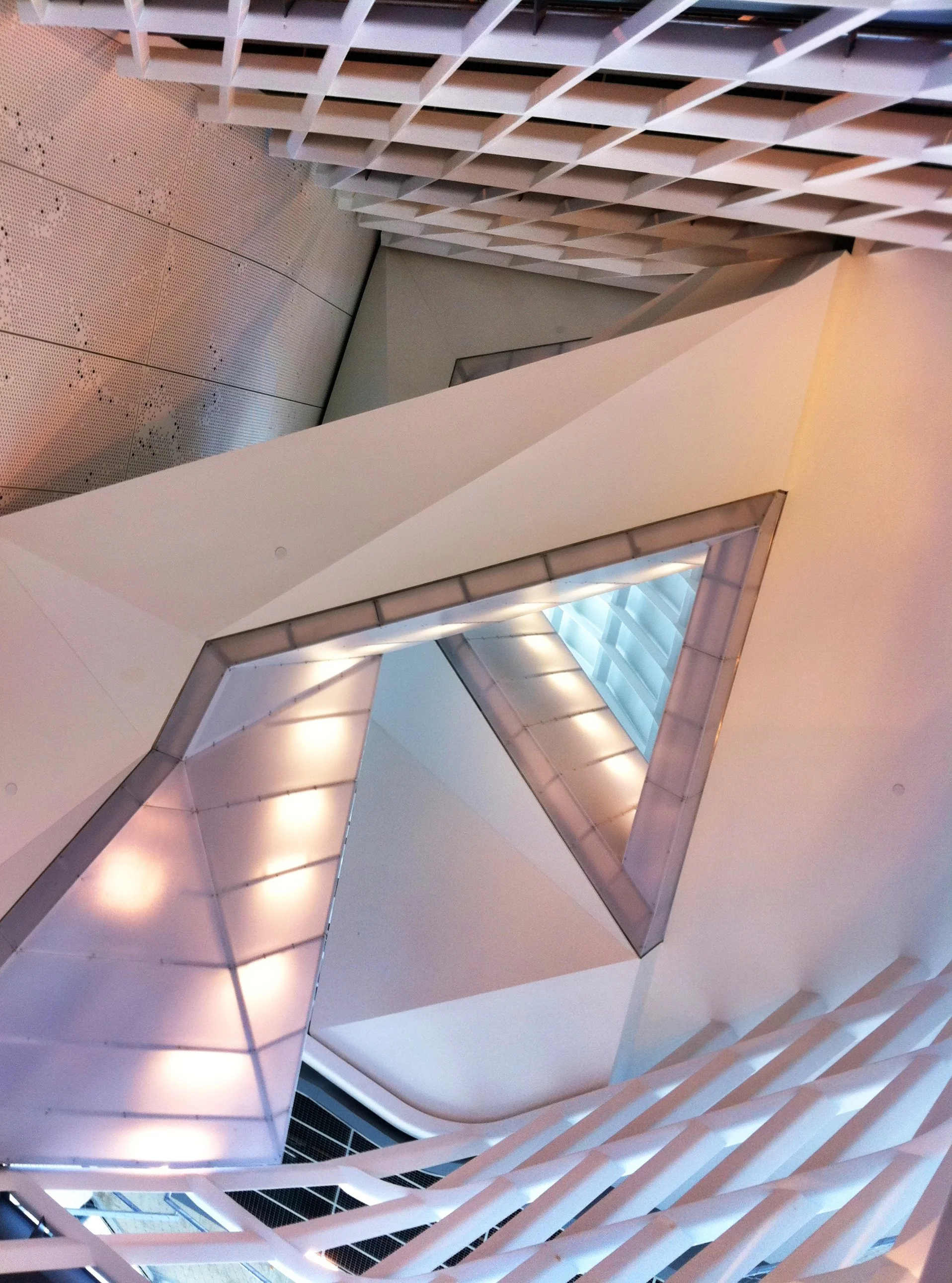 I have wanted to see inside the new Cooper Union building (designed by Morphosis) for some time now, and finally got my chance with an AIA Architects League of Northern New Jersey tour. The advertisement for the tour clearly stated that no interior photos were allowed, so I left my aforementioned Canon EOS 20D home, which honestly was ok because it’s kind of a pain in the ass to drag around sometimes anyway. Of course once we got inside the building, the tour guide told us that he never heard of this shadow photo ban and told us we could take as many pictures as we wanted to. Armed only with my iPhone 4, I did my best but still regret the resolution and hope that the next time I am inside there, I’ll have a better camera on me and that the strict no photo rule is equally ignored.