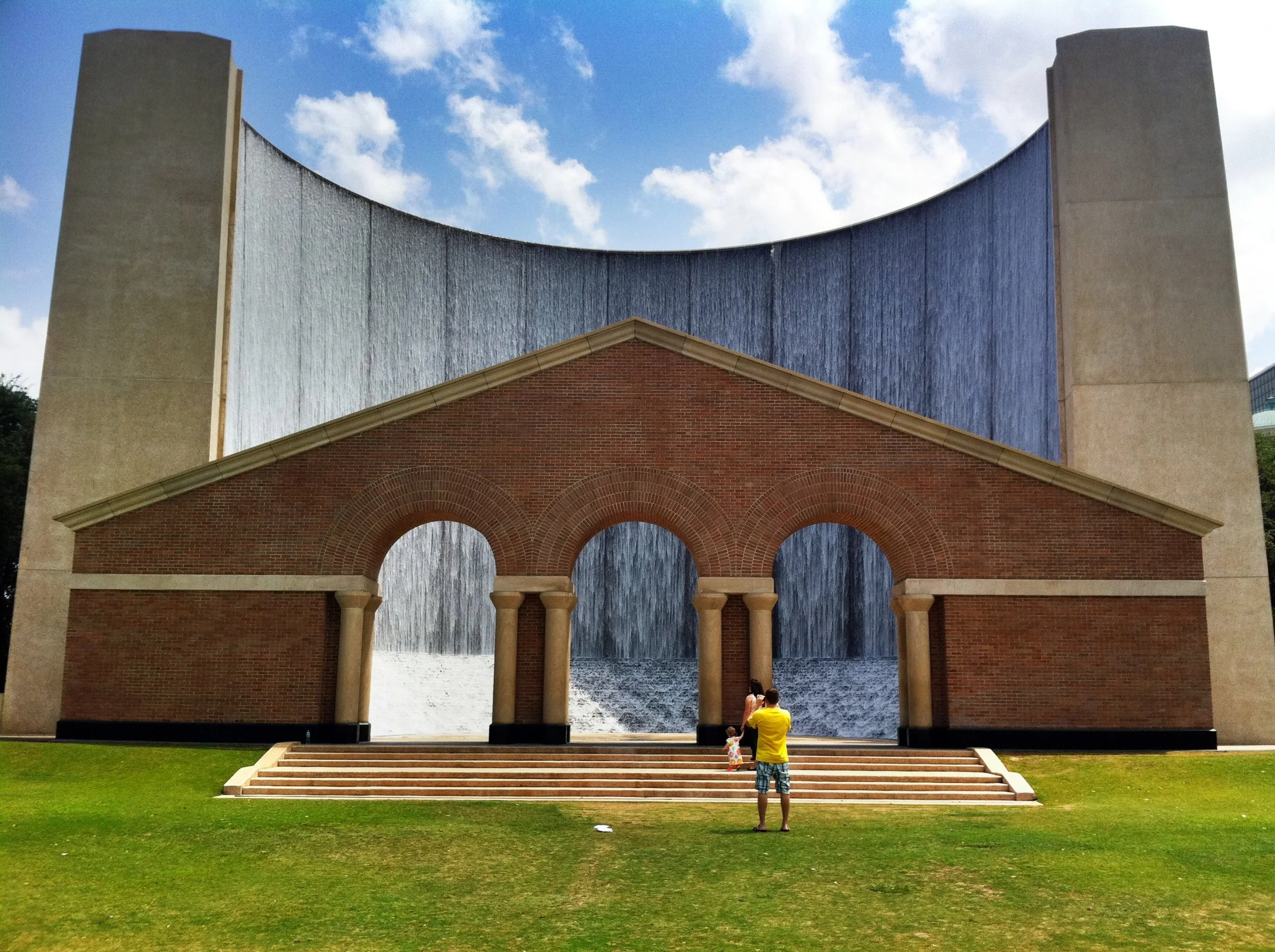 I had twice previously visited the Philip Johnson designed fountains at the Williams Tower near the Galleria in Houston and both previous times the water at the Philip Johnson designed fountains was turned off. Luckily the third time was indeed the charm (whatever that means) and the wait proved worth it. The fountains were, in a word, spectacular.