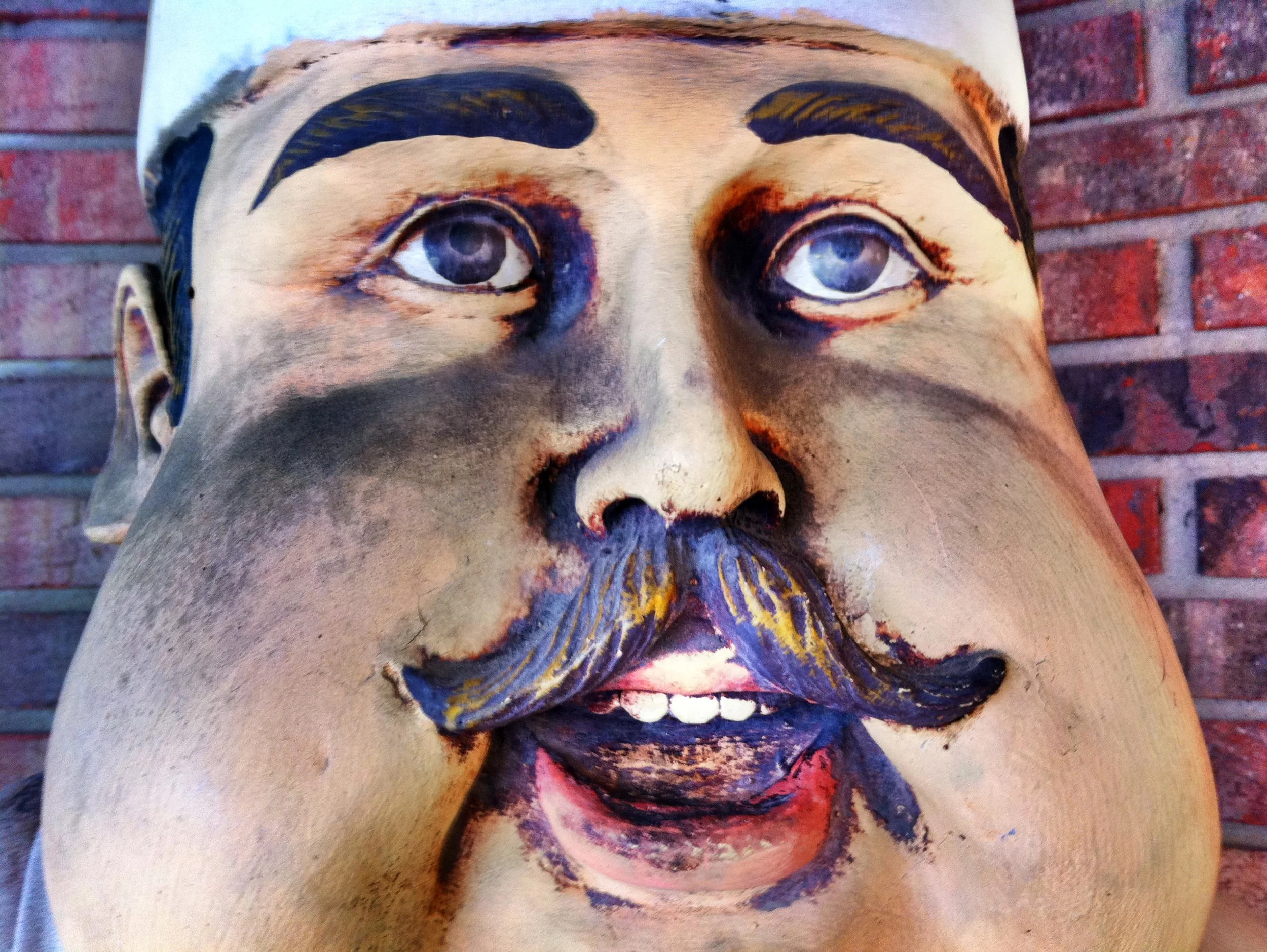 We’ve moved on from Chicago to an entirely different weekend, where we replaced the good weather with a cold rain, and replaced the Blues festival with BBQ, or in this case, Bar-B-Q. This is Moonlite Bar-B-Q Inn in Owensboro, Kentucky, an hour and a half west of Louisville, longer if there’s a cold rain outside. This was a recommendation from a friend whose BBQ (or in this case, Bar-B-Q) recommendations I trust without question. It was most definitely as good as its reputation, and is worth the trip if you are within a reasonable distance of Owensboro, cold rain or not.