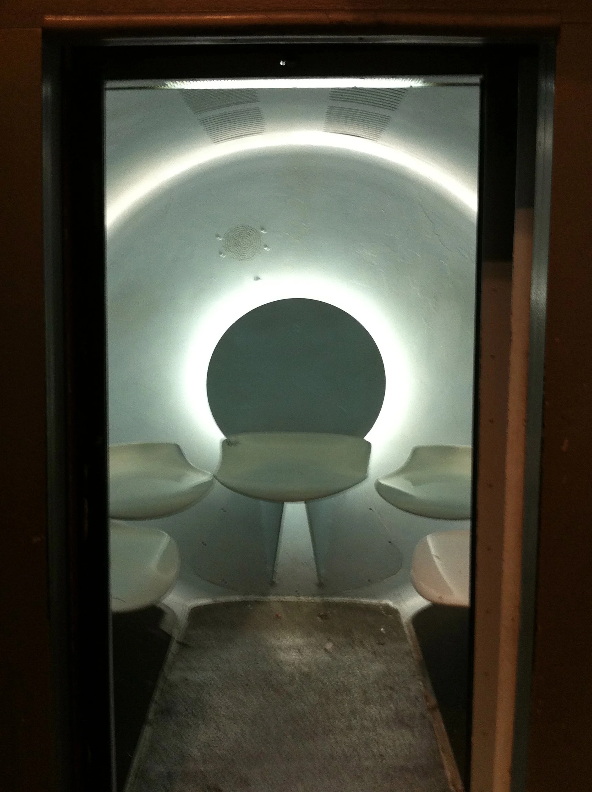 The slideshow quickly shifts from the Iowa Pork Queen to become all about the arch. Eero Saarinen's masterpiece in St Louis is still impressive in person and still worth the trouble to see. After clearing a security checkpoint, buying a $10 timed entry ticket and waiting in line, you eventually board a little tiny spherical train car (with a 4 foot high door and seats (but not necessarily room for) five passengers. It's a little like tomorrowland or 2001, back in the good old days when the future seemed so optimistic.