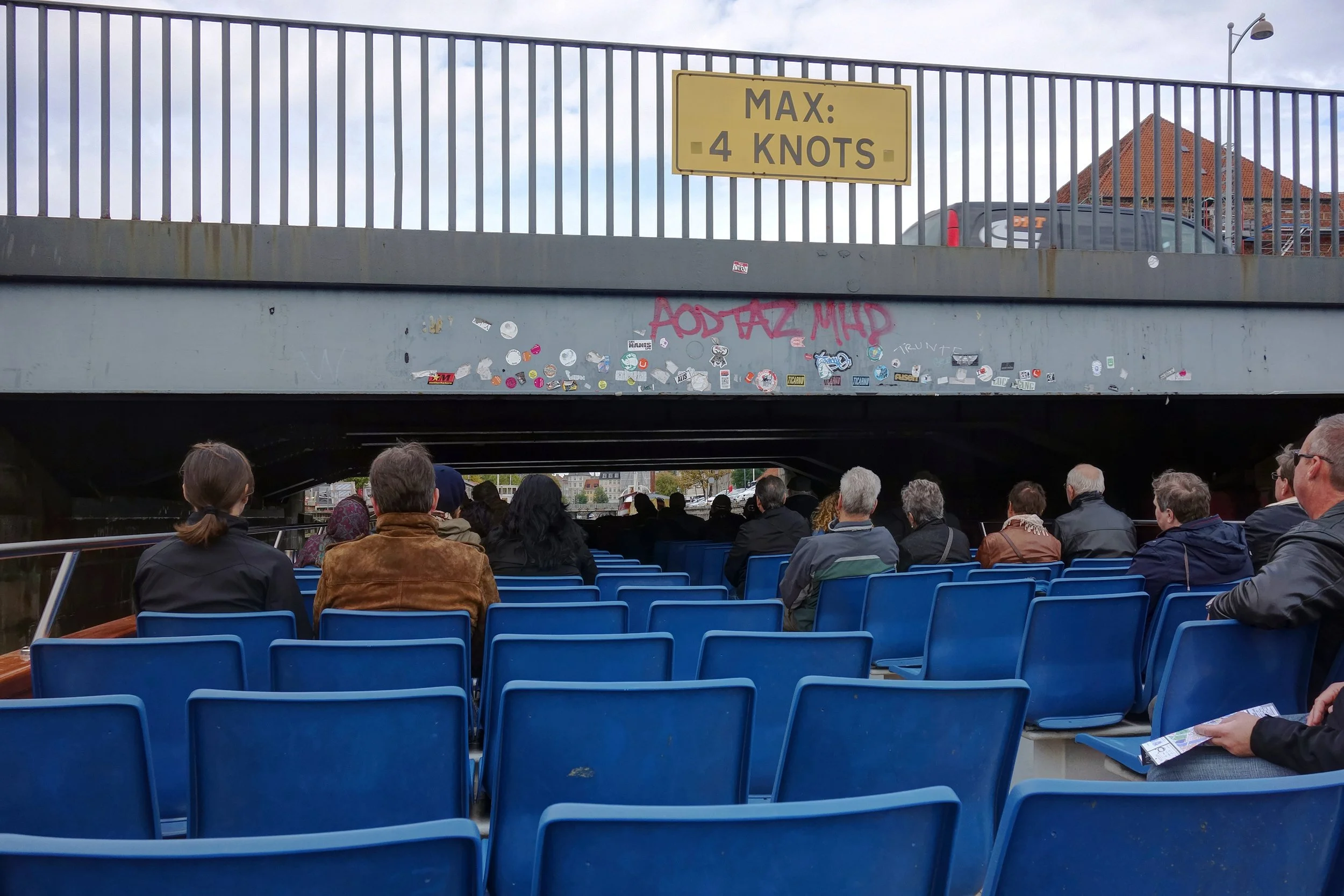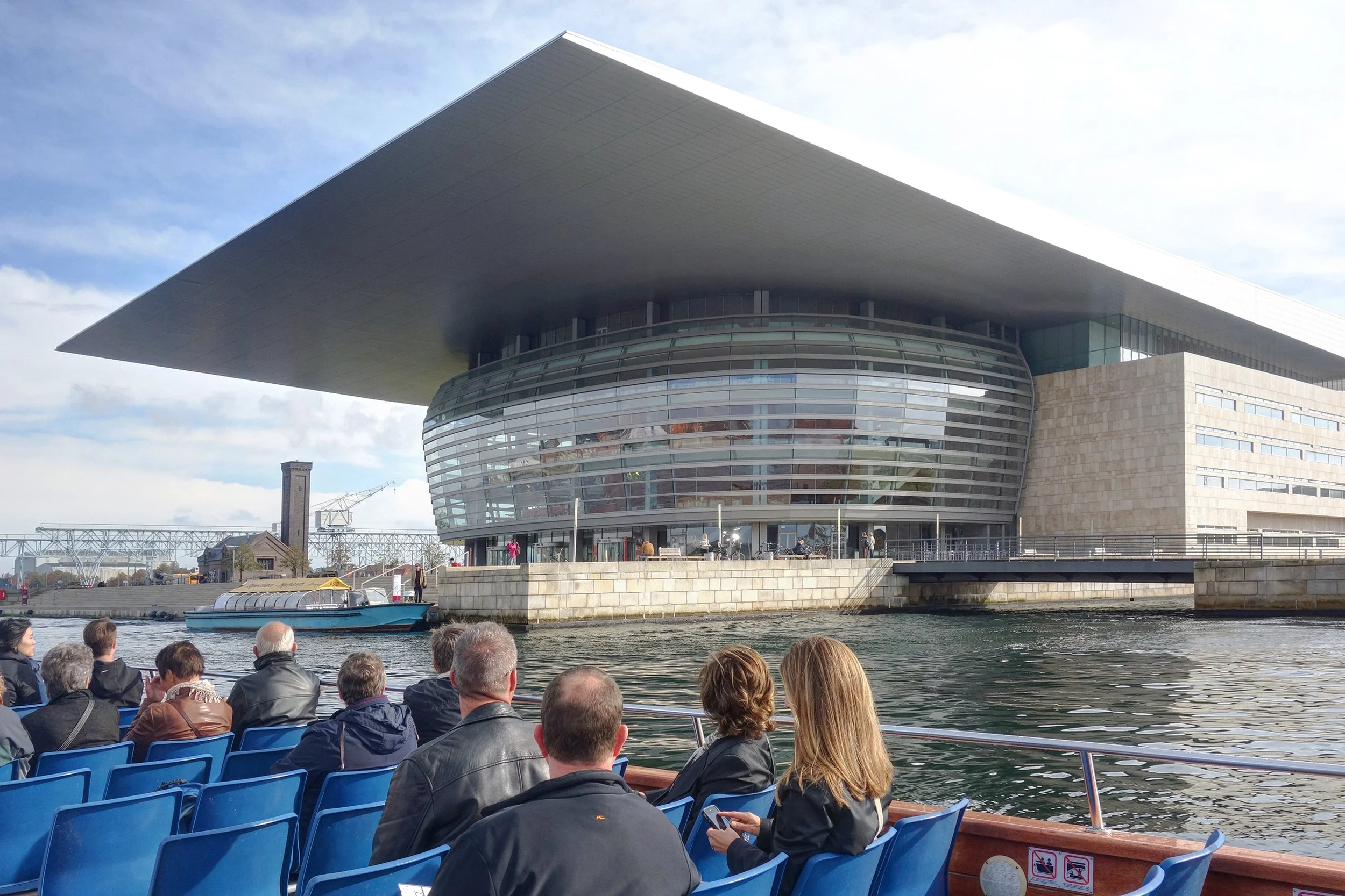 From the canals and into the harbor, this is a head on view as the boat looks to collide into the Copenhagen Opera House by Henning Larsen (no reason to worry- we veered left just in time to avoid certain death). The lady in red was our disinterested (or possibly just Danish) tour guide who spoke in enough languages that sooner or later everyone had some idea of what was going on.
