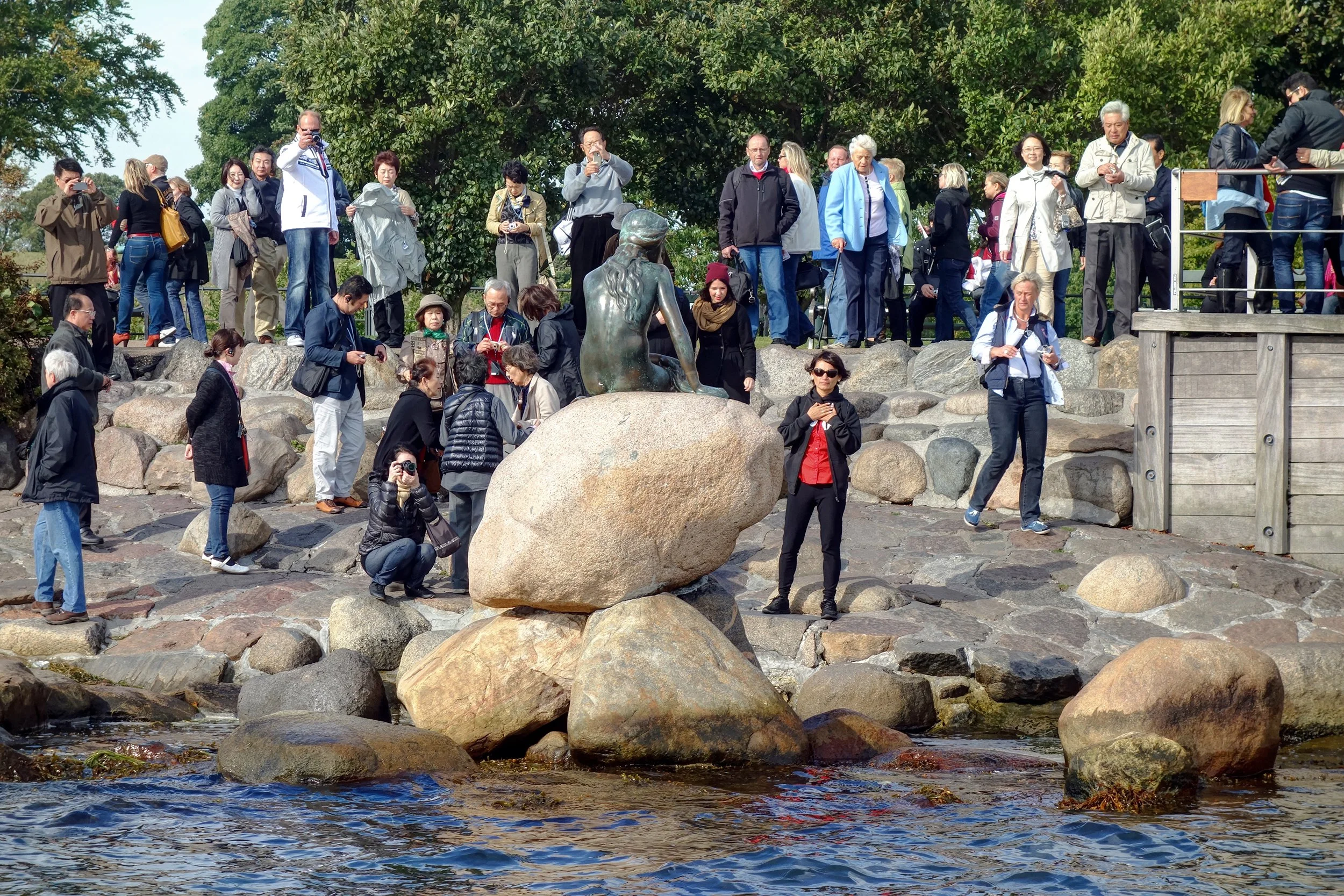 Sure, the hard and right thing to do would be to walk over to see the statue (it's really out of the way) and to get the picture that everyone always gets, the one where the solitary, wistful, dead eyed mermaid is framed by the water and distant buildings of the harbor. Or you could take the easy way out, sit in the last row of the tour boat and then wait for it to turn around and away from the statue, realizing full well that the background would be cluttered with tourists taking pictures back at you. I chose the easy way.