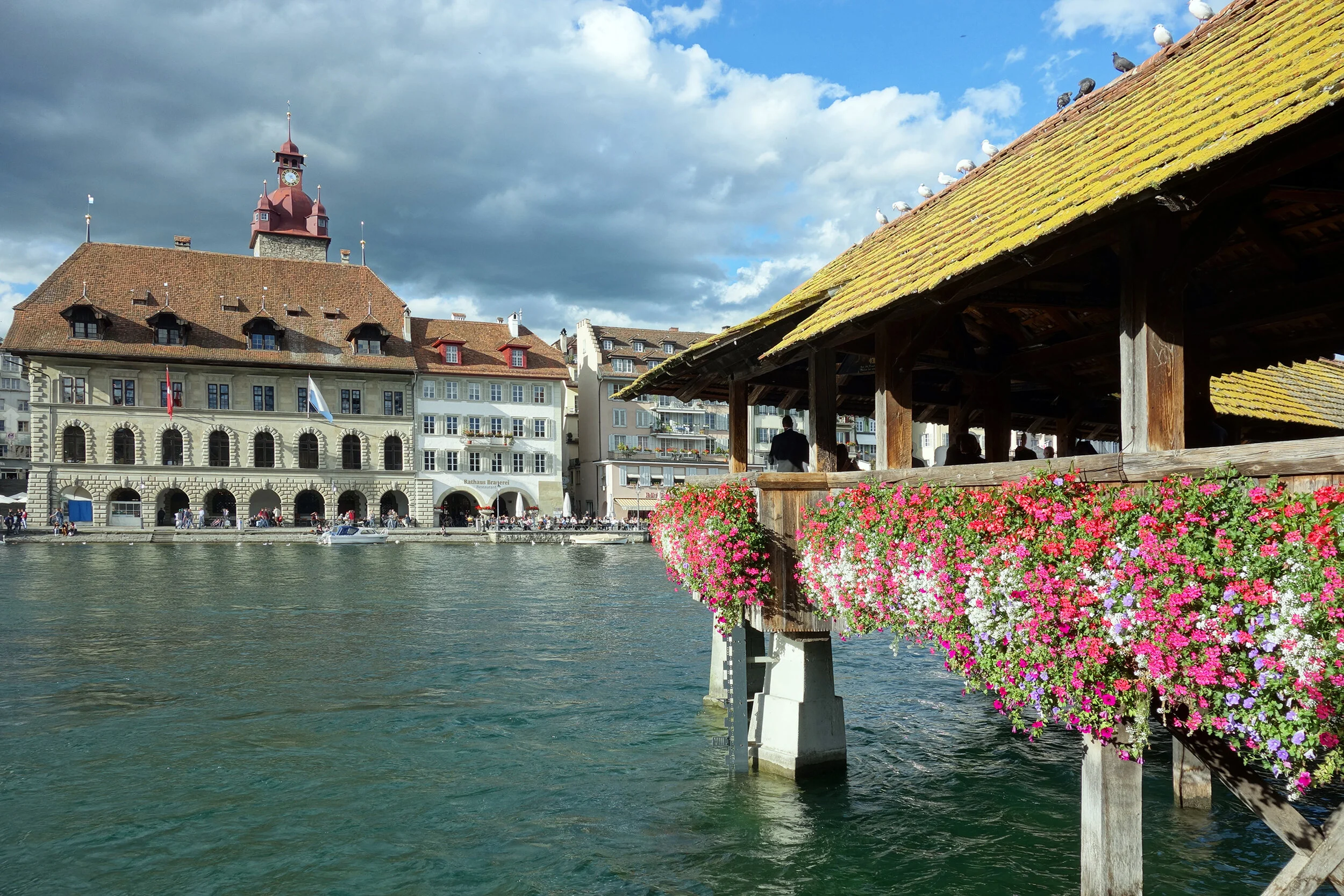 If you were to draw a triangle between Basel, Zürich and Lucerne (or possibly Luzern), Luzern (or possibly Lucerne) would be at the bottom point, an easy hour (or less) rail trip from either city. What separates Lucerne isn't that it's a city (just like Geneva, Lausanne and Zürich) on a lake that is framed by distant snow covered peaks, but rather its river. The Reuss River cuts through the city and its old town and is spanned by shockingly beautiful pedestrian bridges adorned with flowers. This bridge is the Chapel Bridge (or Kapellbrücke if you're all about the German), and it dates back to 1333 or 1993, depending on where you're standing. After minding its own business uninterrupted for 630 years through wars and famine and plagues, a good chunk of the bridge burned down when it fell victim to an idiot with a boat on fire. The destroyed sections were rebuilt and the bridge once again lovingly spans the Reuss, same as it ever was, same as it ever was.