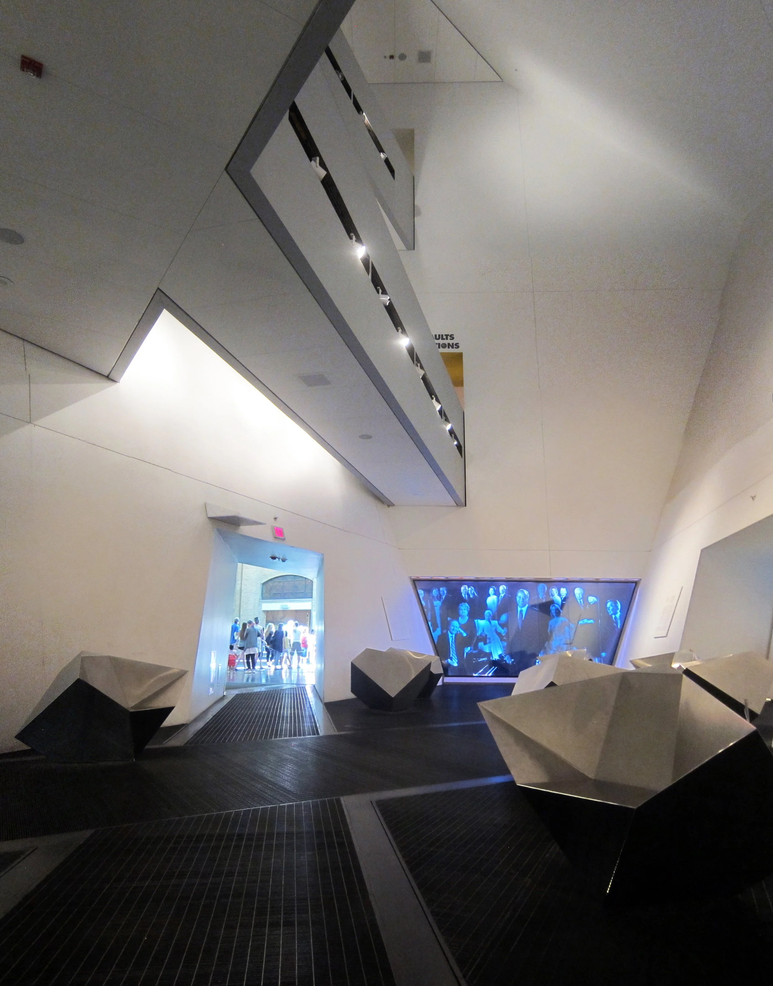 This is inside the Spirit House at Daniel Libeskind's addition to the ROM (or Royal Ontario Museum) and inside the literal (free to the public) beating heart of the design, which was not all that busy on a national holiday.