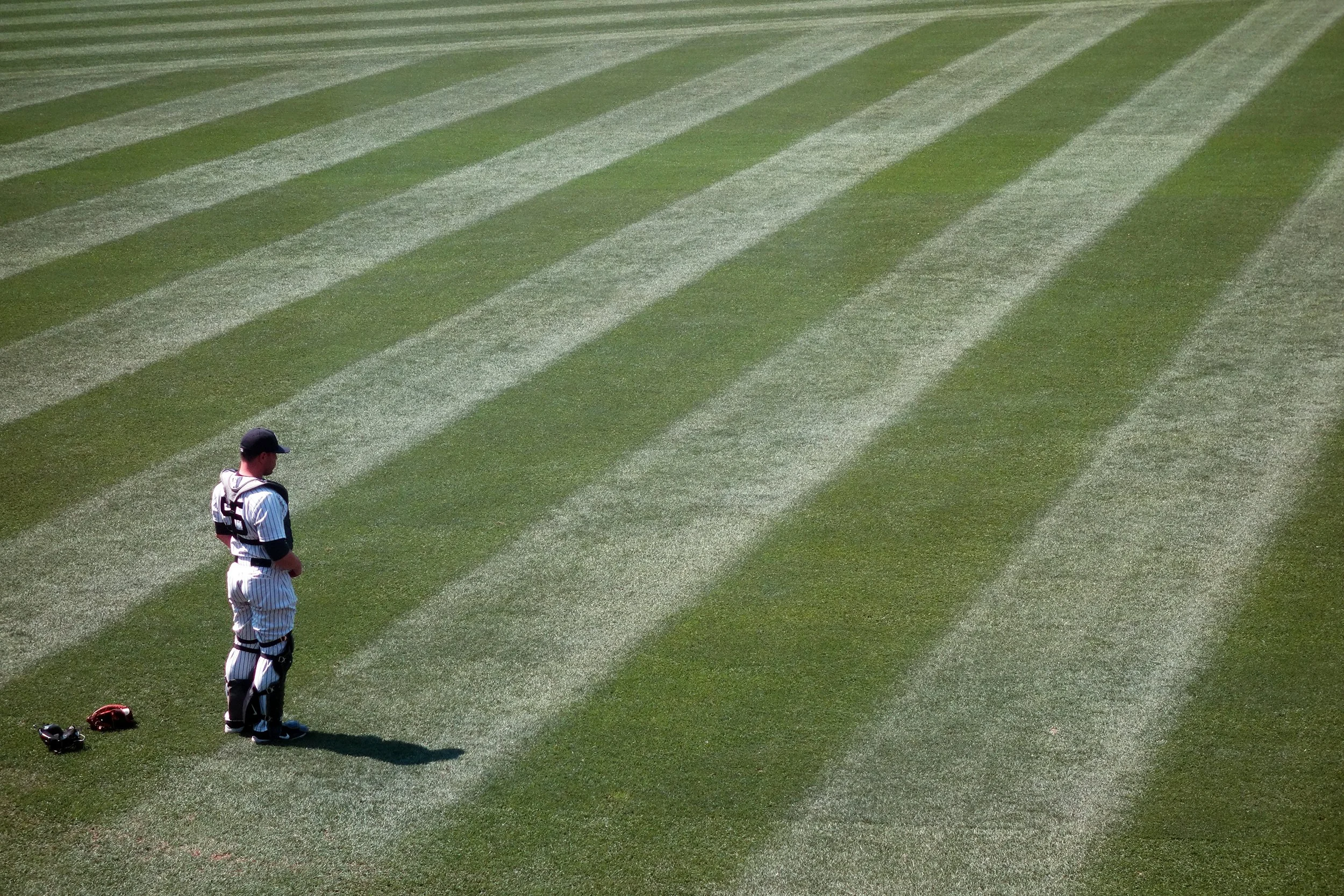 Our seats were great, in an air conditioned box with a lot of solar heat gain right in the back of center field. There was a sports bar type vibe to the room, and wait staff was ready to bring you food to your seats, but it was oddly quiet and kind of off compared to the experience you might get seated just about anywhere else at (New) Yankee Stadium. There was no crowd noise or announcements or stupid little things between innings, just the radio play by play and this killer. and in the end detached, view.
