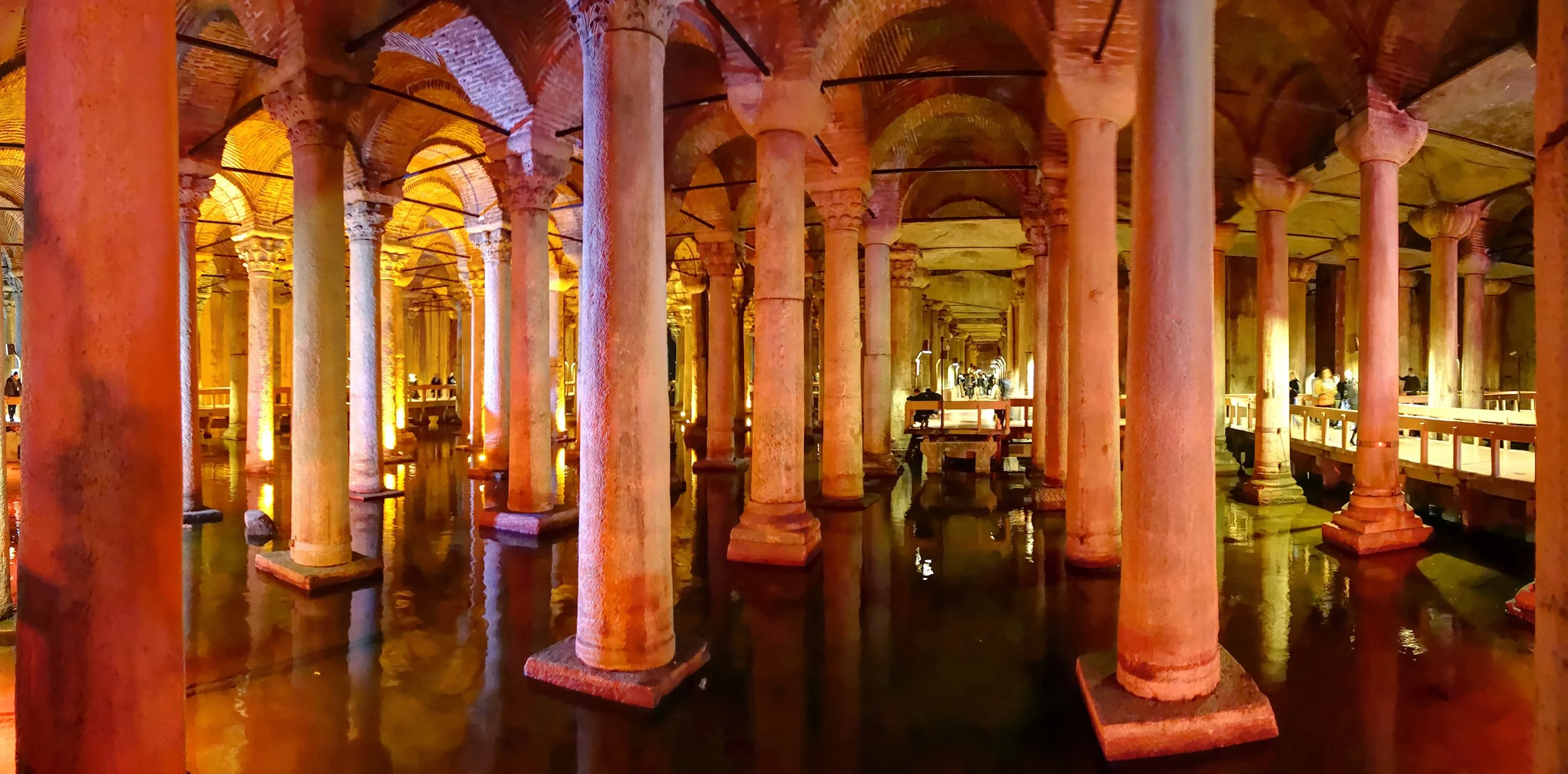 With not all that much time in the city, I decided to concentrate on the big three sights in Sultanahmet, the historic heart of the old city of Constantinople. This first picture is from my first stop, the magnificent Basilica Cistern, the Sunken Palace which stretches endlessly under the ancient streets. It was built as an underground reservoir and an amazingly nice one at that, with 1,500 year old vaults and columns marching off in all directions.