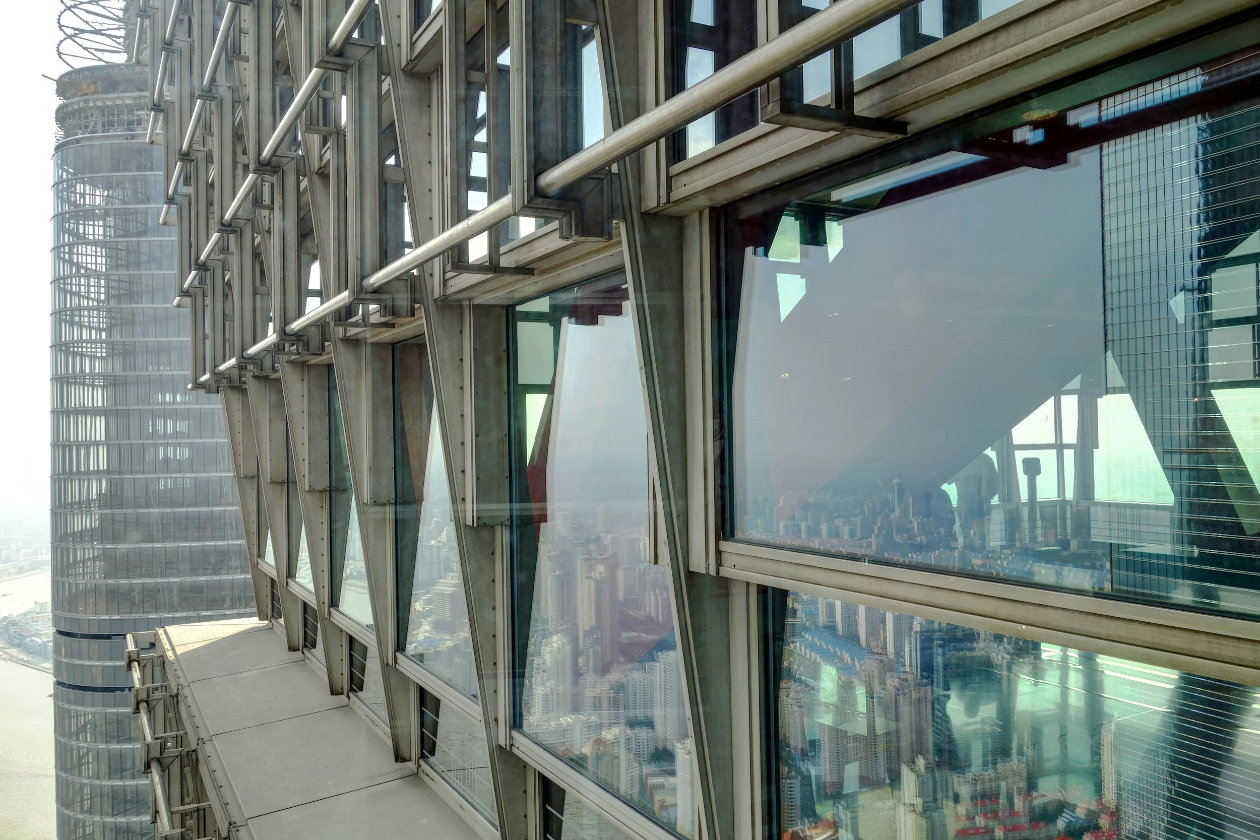 A close up construction photo of the uncreatively named Shanghai Tower from the observation deck at the Jin Mao Tower, 15 stories above my hotel room and 88 stories above the street.