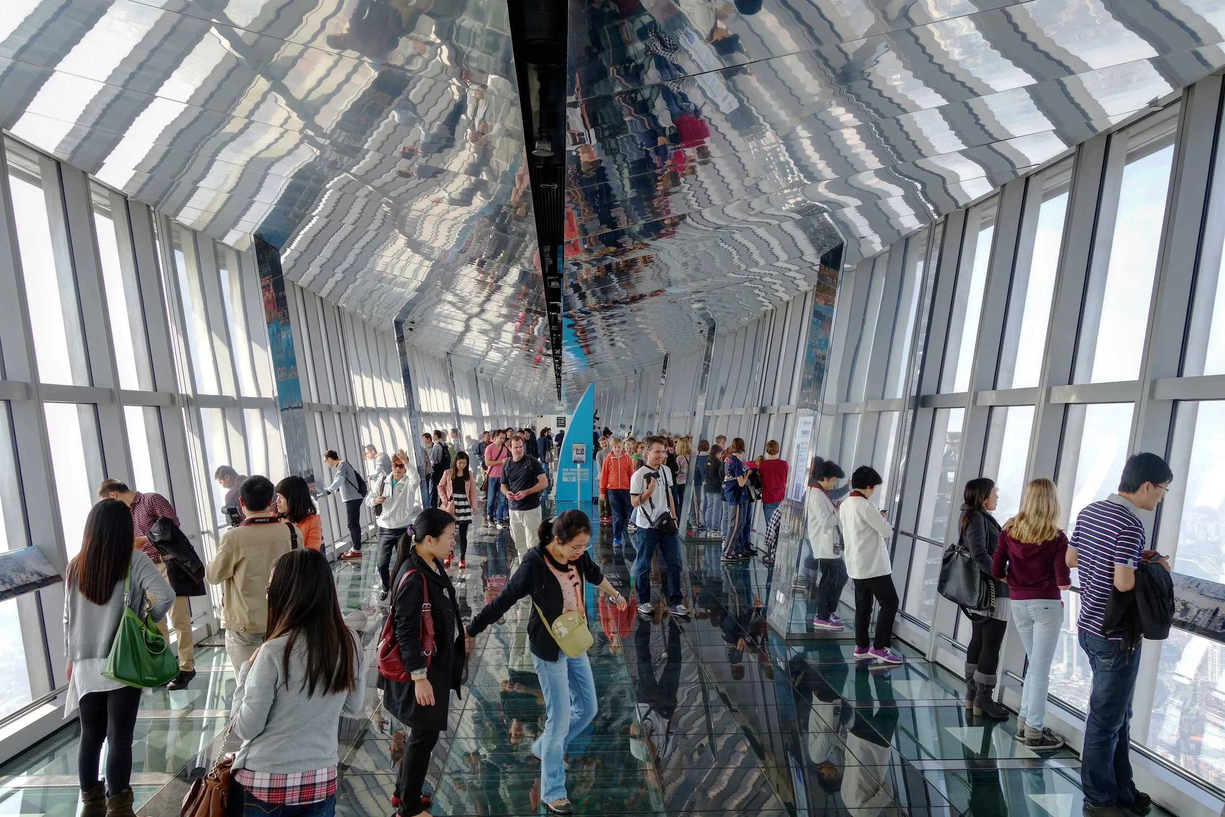 A lot of the things to do in Shanghai involve looking at itself. The Bund is just an opportunity to look at Pudong, and observation decks at the towers are just opportunities to look at the other towers you were just in. Still, some of the observation decks were really fun, like this one in the Shanghai World Financial Center, located at the top of the keyhole opening and complete with a reflective ceiling and a glass floor.