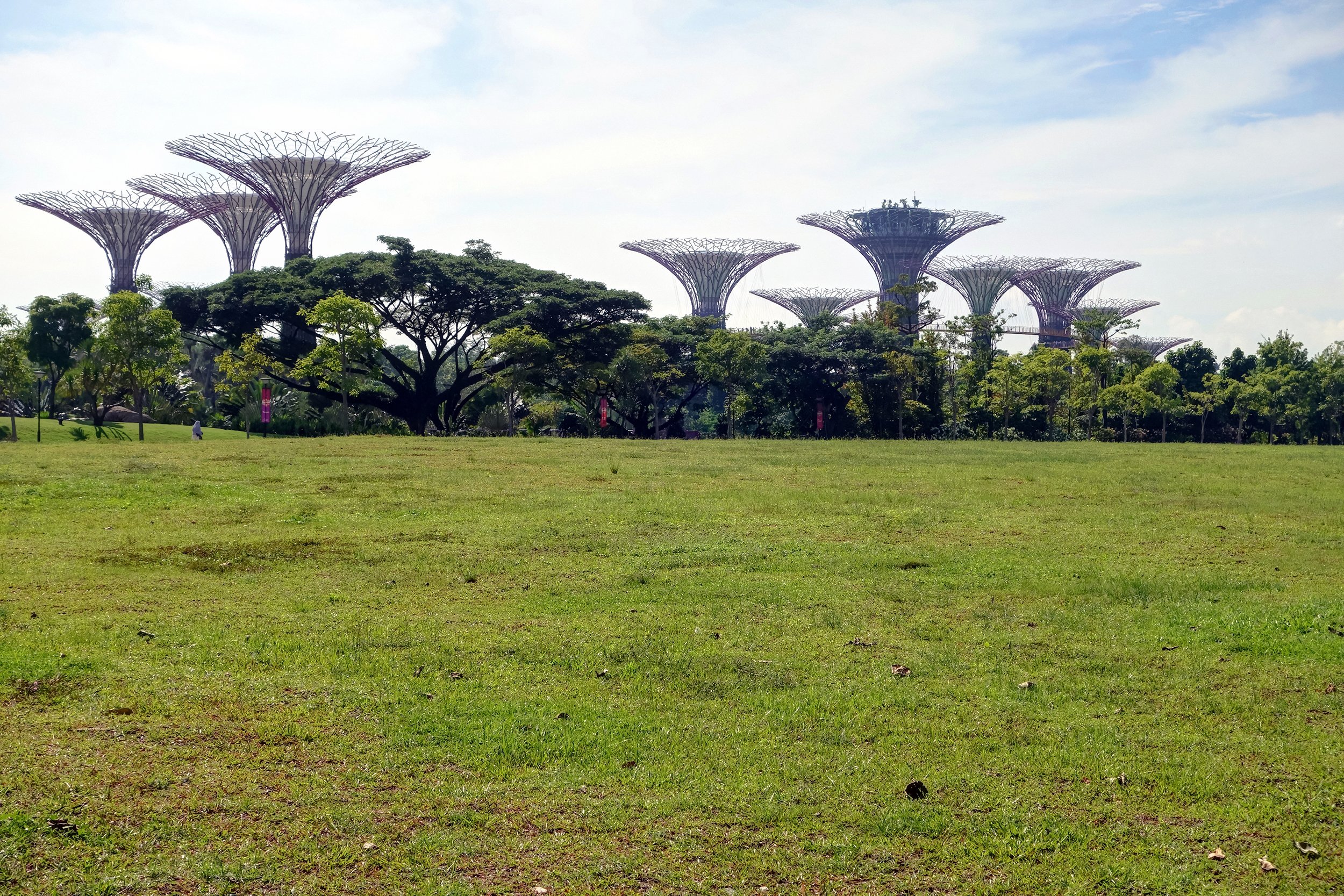 And while the (city) state may be authoritarian and unforgiving, at least it's really pretty to look at. This is the approach to the Gardens by the Bay with the giant, fake mega trees towering over all and marching off into the distance.
