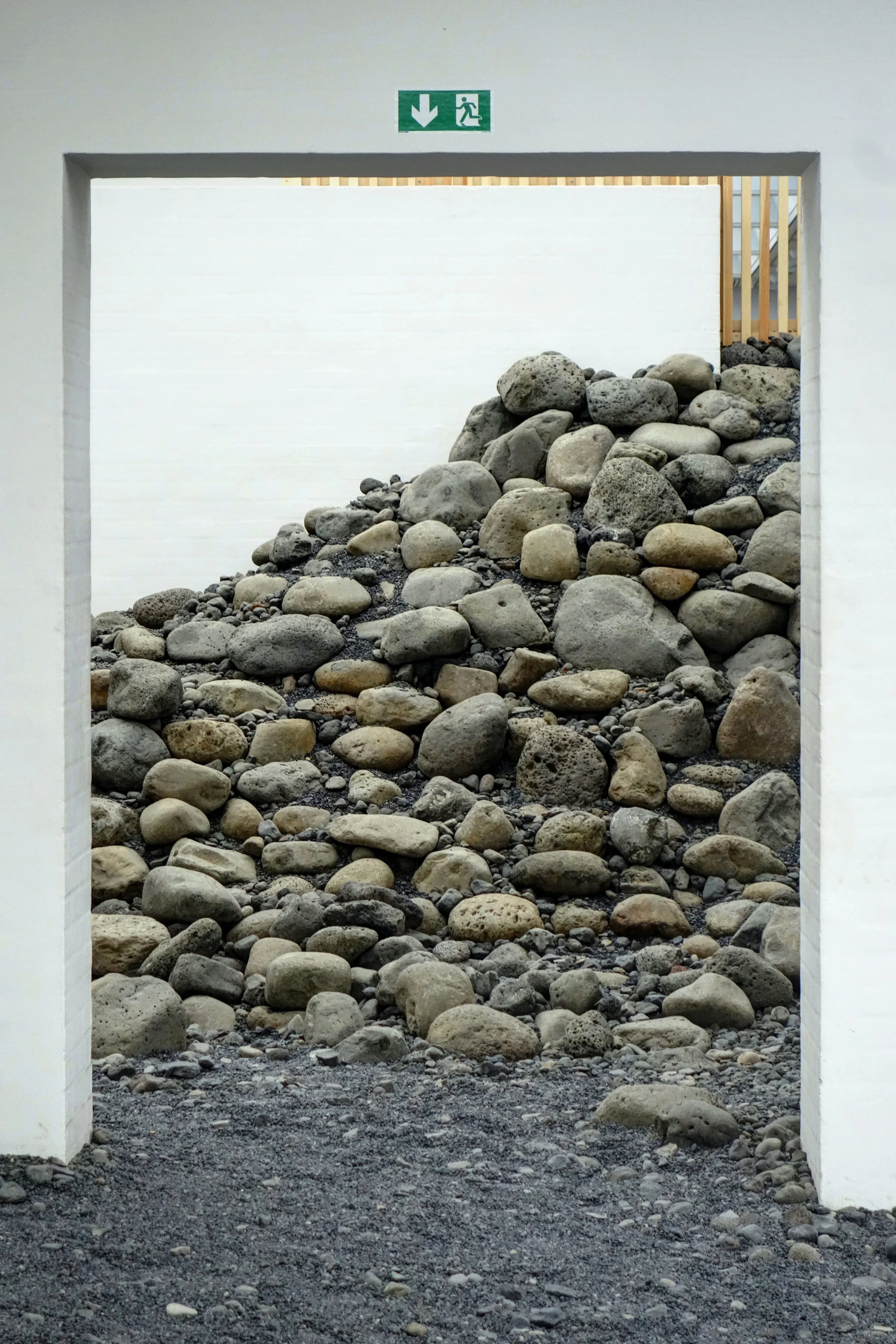 I intentionally went to ARoS and Arhus and Denmark to walk through a specific rooftop installation by Olafur Eliasson, but it was luck and fate that brought me to another Olafur Eliasson exhibition. My trip coincided with a major show at Louisiana, an incredibly influential art museum located about a half hour north of Copenhagen on the shore of the sea. The show featured some films by Eliasson (he should stick to the art and leave films to someone else to be honest), an Eliasson model room exhibit (wonderful) and this piece: “Riverbed (2014).” Eliasson took over an entire wing of the museum and filled it with rocks (lots and lots of rocks) and a stream. Visitors enter the museum galleries and walk anywhere that they want to, all the time both admiring and questioning the art. The galleries have a natural elevation progression, you start low and go up some stairs, but all of the rocks exaggerate this, creating rooms with low ceilings and doorways that you would need to crawl through to pass. And since walking the galleries is loud and kind of messy, a full time caretaker with a small spade is there to make sure that the water doesn’t stop and that a river always runs through it.