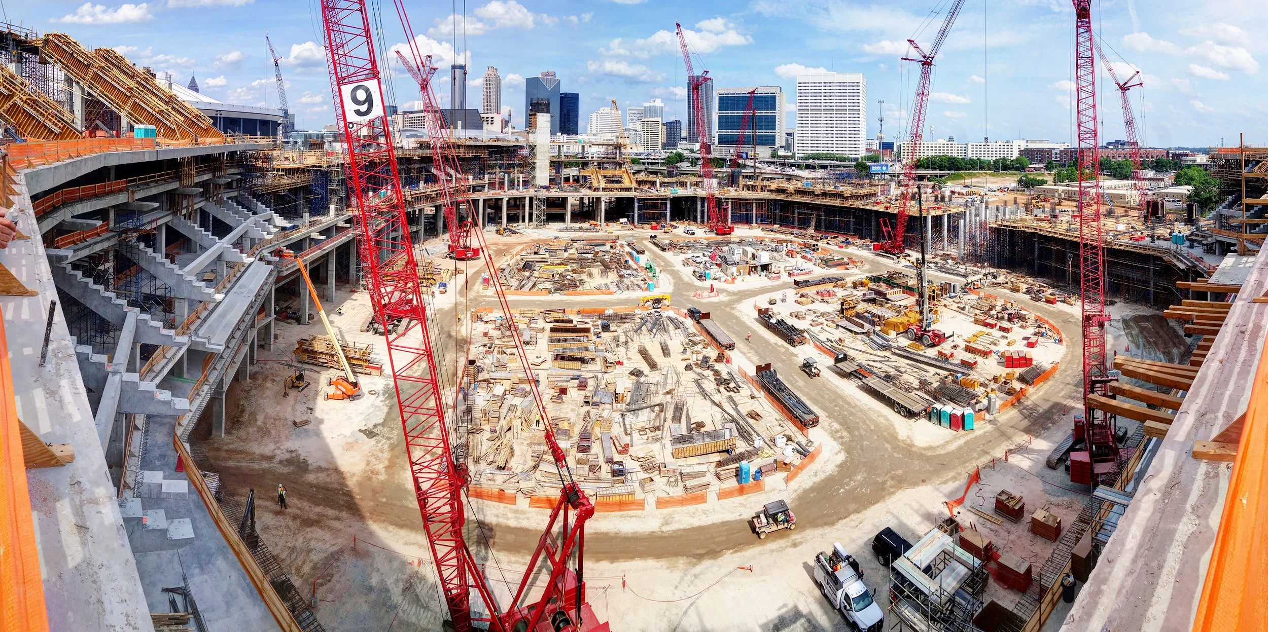 ET 213 (to the AIA, “ET” means educational tour and not Esa Tikkanen or Emma Thompson) was a construction tour of the massive new Atlanta Falcons football stadium, under construction and only a block or two from the convention center, although we still took a bus. The stadium is still a year and a half away from opening, but enough of it is built that it at least looks like a stadium.