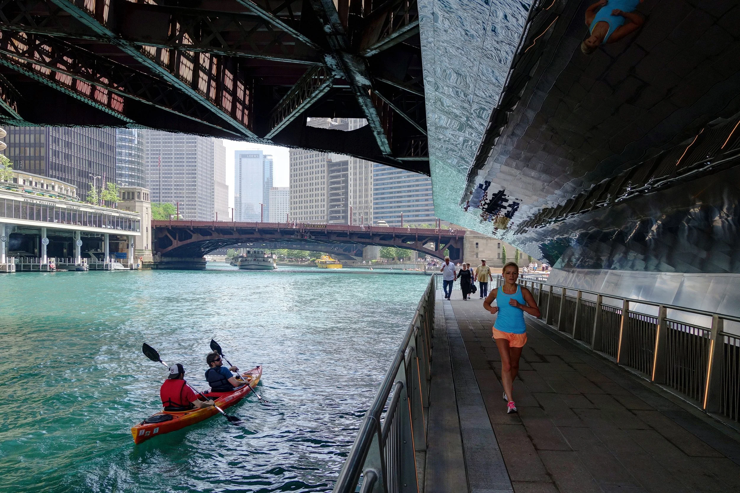 Chicago may have given a back seat to design at The 606, but they certainly didn’t when it came to the Riverwalk. This was my first time on the new extension, and the way they weave under the bascule bridges is spectacular, with mirrors that give you a bit of that Fata Morgana effect is just spectacular. Good job, Chicago!