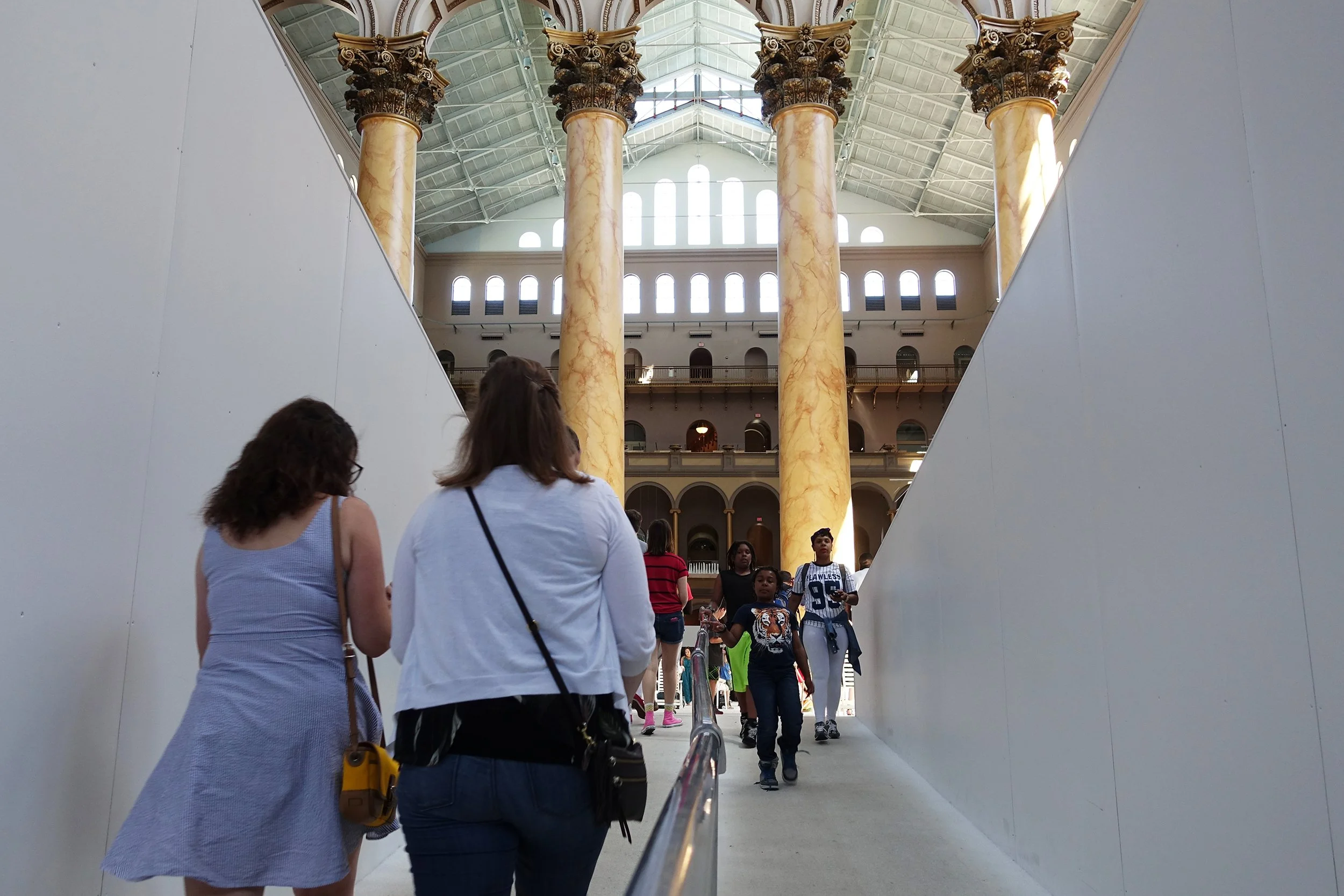 This is The BEACH at the National Building Museum, a mammoth installation full of countless white plastic balls and way, way too many people. It was designed by a firm that unironically (or super ironically, who really knows) calls themselves Snarkitecture, and even with a reservation you’re going to find yourself waiting in line.