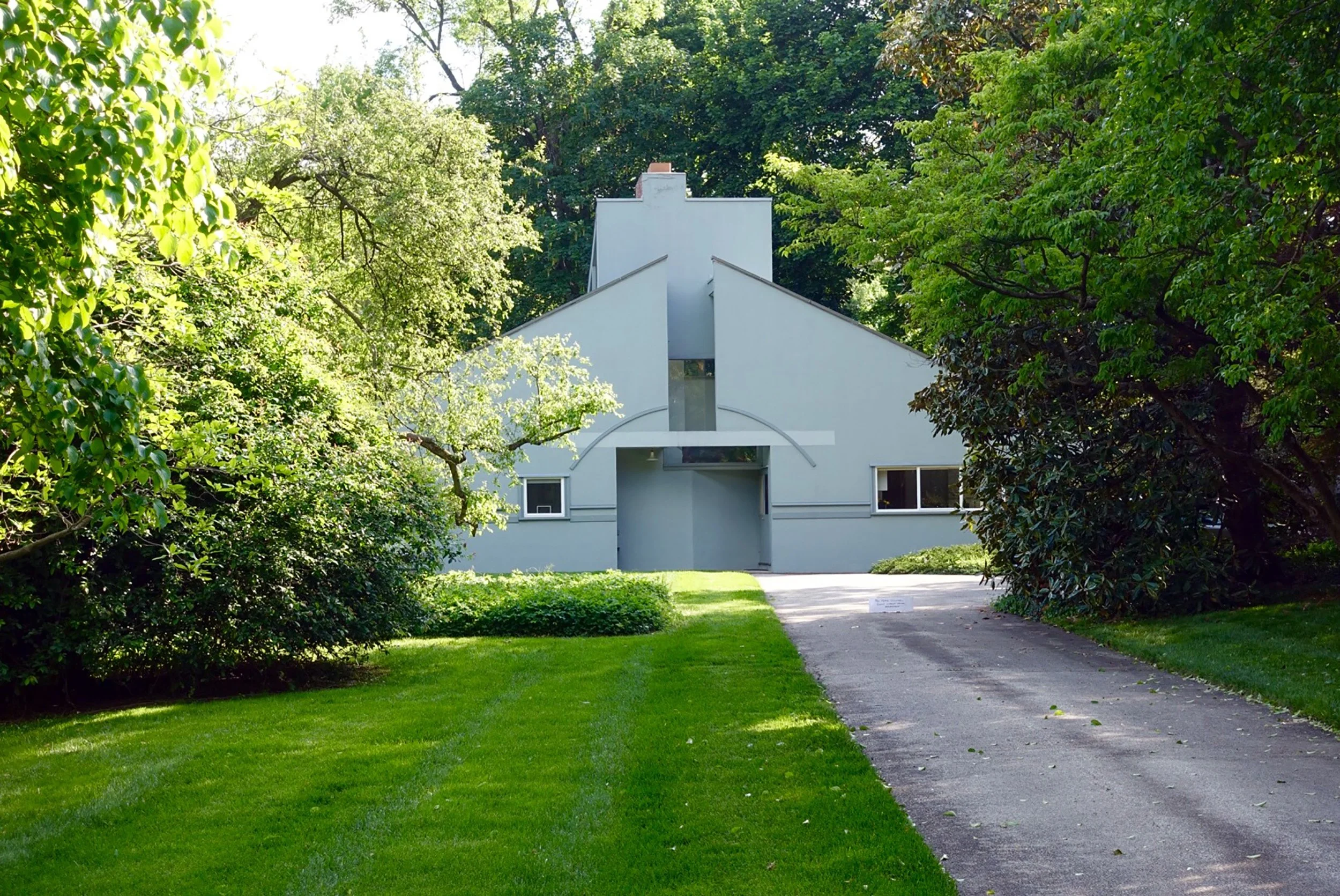 The Esherick House is located on Sunrise Lane, a block long dead end street in a nice, leafy residential neighborhood in Chestnut Hill in Northwestern Philadelphia. At the other end of that block, where the Sunrise Lane starts at Millman Street is another house designed by a famous architect. Robert Venturi’s mother’s house (or the Vanna Venturi House) is an icon of postmodernism and a world famous architectural monument. In that same first year class when I drew two point perspectives of the Esherick House, I also went on a field trip where our fearless professor had us standing on the lawn looking into the windows of this house where (thankfully) no one was home to call the police on us. Today there are chains across the driveway and signs all over the place warning architects to stay away, but luckily from just the right angle you can cut off all of those warning signs and imagine a clear path to standing on the lawn and once again looking into the windows before the police show up.