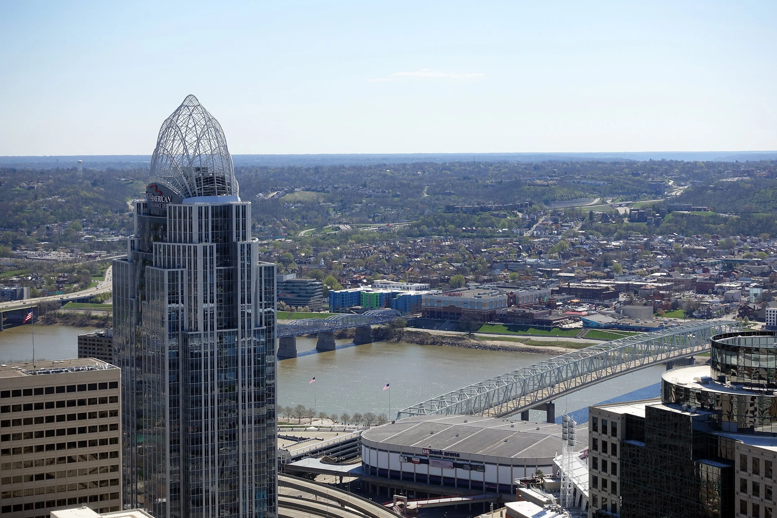 Ohio is a big state, but not so big that you can’t hop from city to city to see things (it would be an awesome place for high speed rail, if such a thing were to ever happen in this country). We’ve already left Dayton, drove to Cincinnati, ascended the Carew Tower and are taking pictures of the Ohio River, Kentucky, and as much of the city that you can see from such great heights.