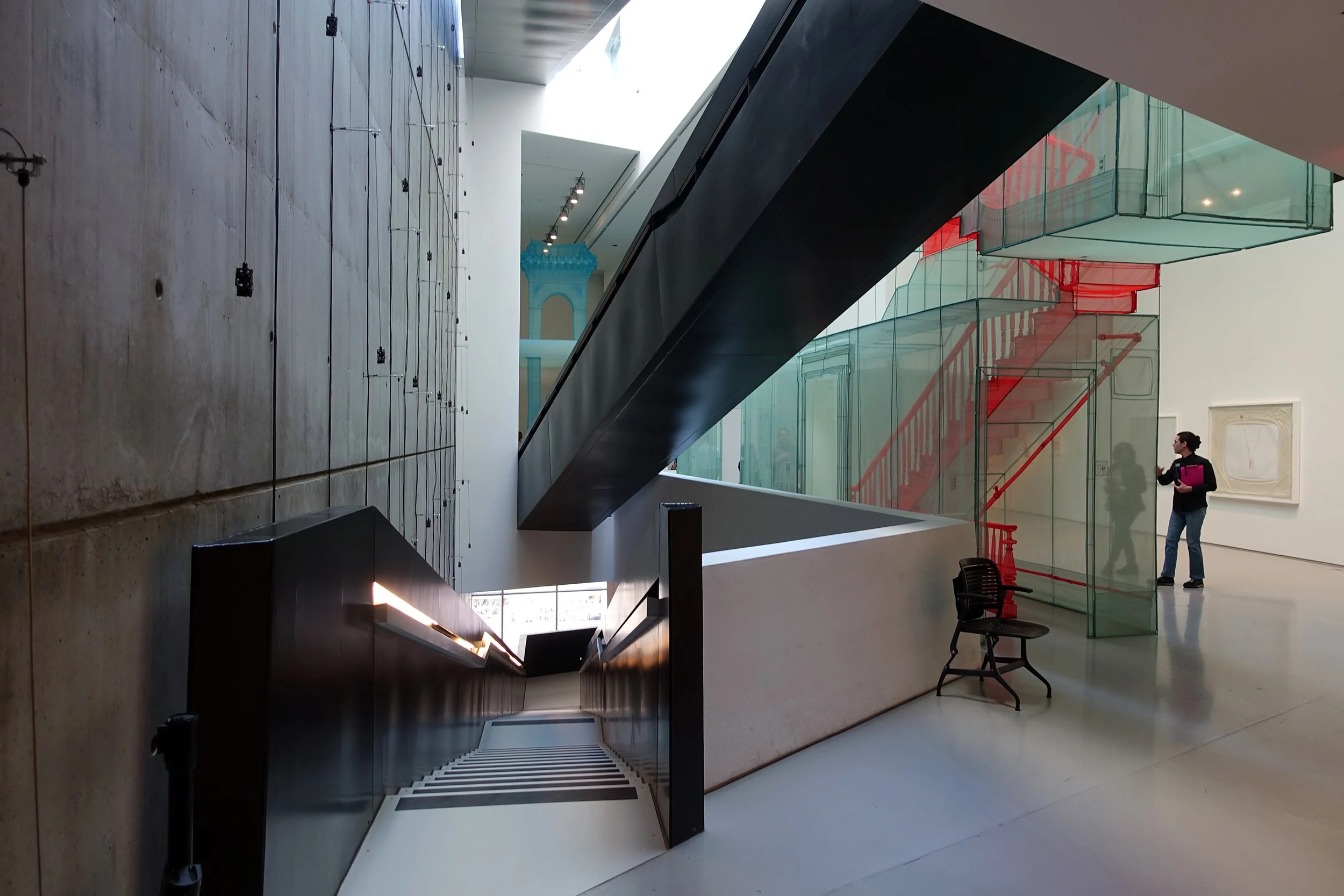 The CAC is a simple and complicated building. It’s simple because it’s small with a main public staircase and easy to understand. It’s complicated because that stair and those spaces shift around enough to keep you guessing as to what you’ll exactly see as you navigate it’s simple plan.