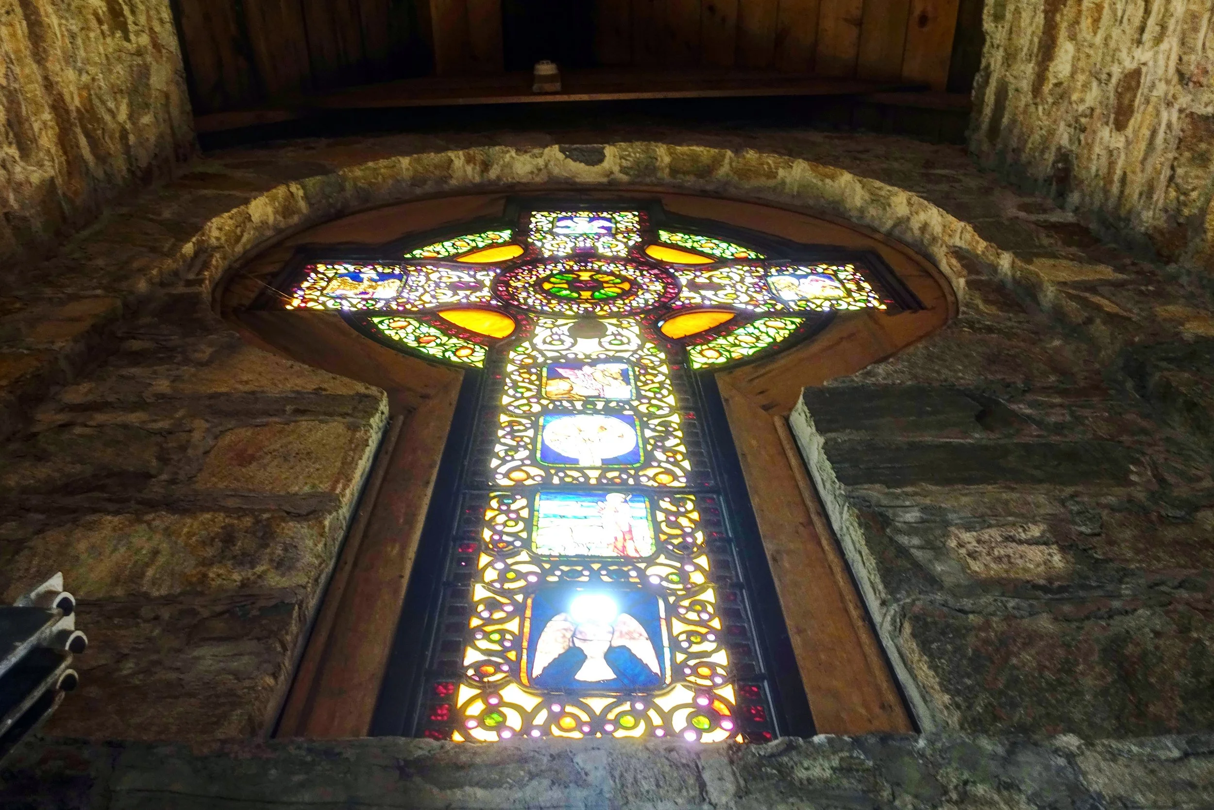 As I put together these slideshows I’ll sometimes try and present photos and stories in the order that I experienced them, although often such blind devotion to a timeline that only I know of doesn’t tell the best story. So with that in mind, we go back across the country to Smoke Rise, a gated community only about five miles from home in Kinnelon, New Jersey, where on an island on a lake is a building that I never even knew existed until now: Saint Hubert’s Chapel, designed by Louis Tiffany.