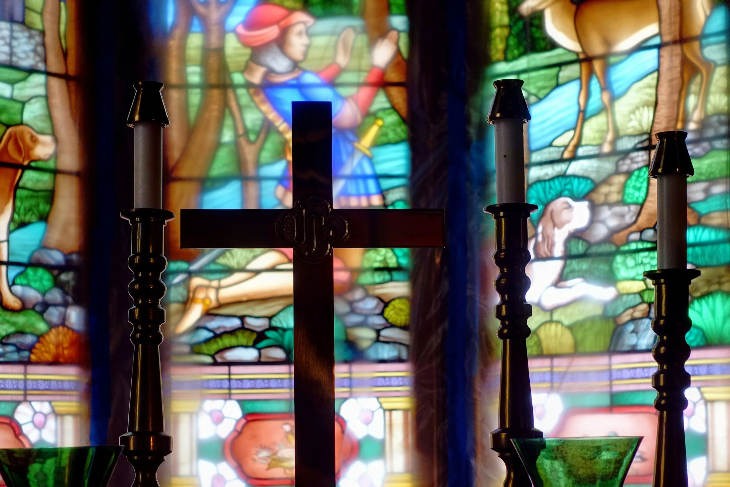 Kinnelon wasn’t always Kinnelon. The lake was home to a tobacco baron named Francis Kinney, and his house was known as Kinney’s Lawn, which eventually renamed the lake and entire township. Kinney not only built a great big house on the lake, he also hired Louis Tiffany (of Tiffany Glass fame) to design a small private family chapel on an island in the middle of the lake, reachable (as many islands are) only by boat. The chapel was named after Saint Hubert, a saint so unpopular that he doesn’t even have his own Wikipedia page. Saint Hubert is supposedly a patron saint of the hunt, which makes sense since the woods around Kinnelon are home to all sorts of adorable, furry huntable creatures. Saint Hubert (or Sancte Huberte) has his name on the chapel’s absolutely gorgeous door, in case you were unsure that the lone chapel on the lone island in the middle of the lake you named after yourself is the right Saint Hubert’s Chapel. And the rest of the Latin translates to “pray for us,” which in this case may mean “pray for us to kill those adorable, furry huntable creatures before they kill us.