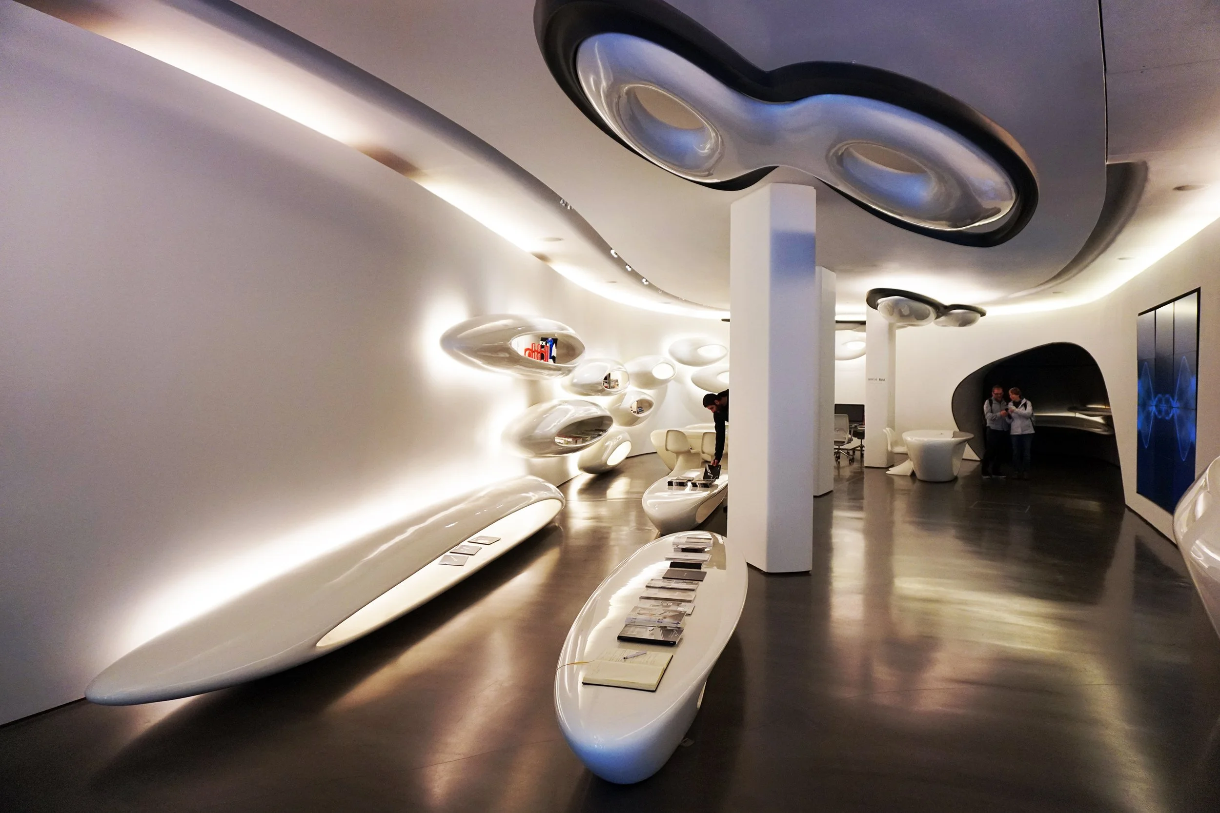 Way out in the middle of nowhere (ok, that’s kind of harsh) in a somewhat boring, nondescript building (again, still pretty harsh) is a showroom like no other. The Roca Gallery isn’t just a good place to buy a sink, it’s also a rare London project designed by London architect Zaha Hadid. It’s also a small, complex, hard to photograph space, although that didn’t stop me from trying to take its picture anyway.