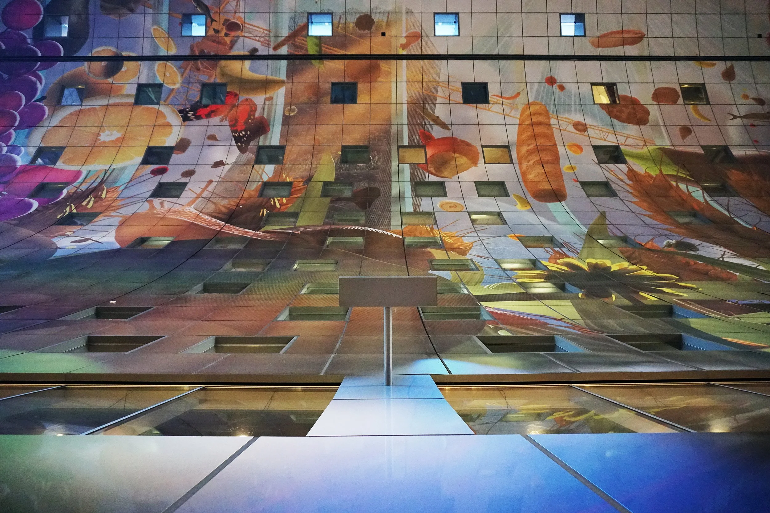 The other landmark that I wanted to feature from this trip to Rotterdam is the Markthal (or Market Hall) by local hero architects MVRDV. It is pretty much what you think it is, a giant covered, enclosed market hall, except that once inside it feels kind of like you’re in a great big cave with pictures of food on all of the walls. It’s a pretty spectacular space and by itself could be reason enough to visit Rotterdam.