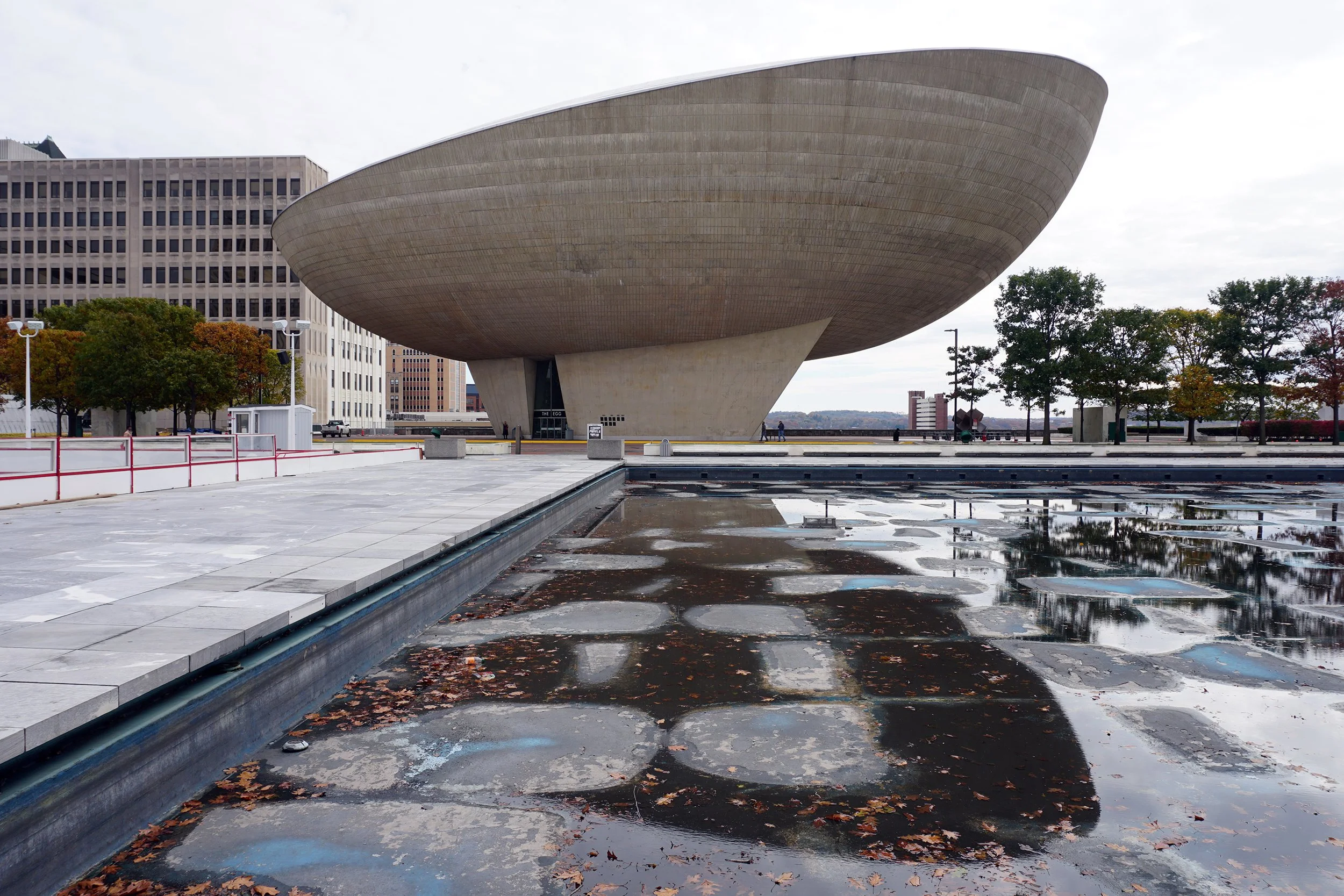 Empire State Plaza is one of the most Modern places you can visit in the country. Designed by Wallace Harrison, it has parking, an indoor unpleasant concourse with nice art, a large reflecting pool, repetitive towers, a history museum, a sculptural arts center and the original New York State Capitol Building all lined up in almost perfect symmetry. It sometimes feels like you’re trapped in a bad science fiction movie, which isn’t intended to be an insult at all.