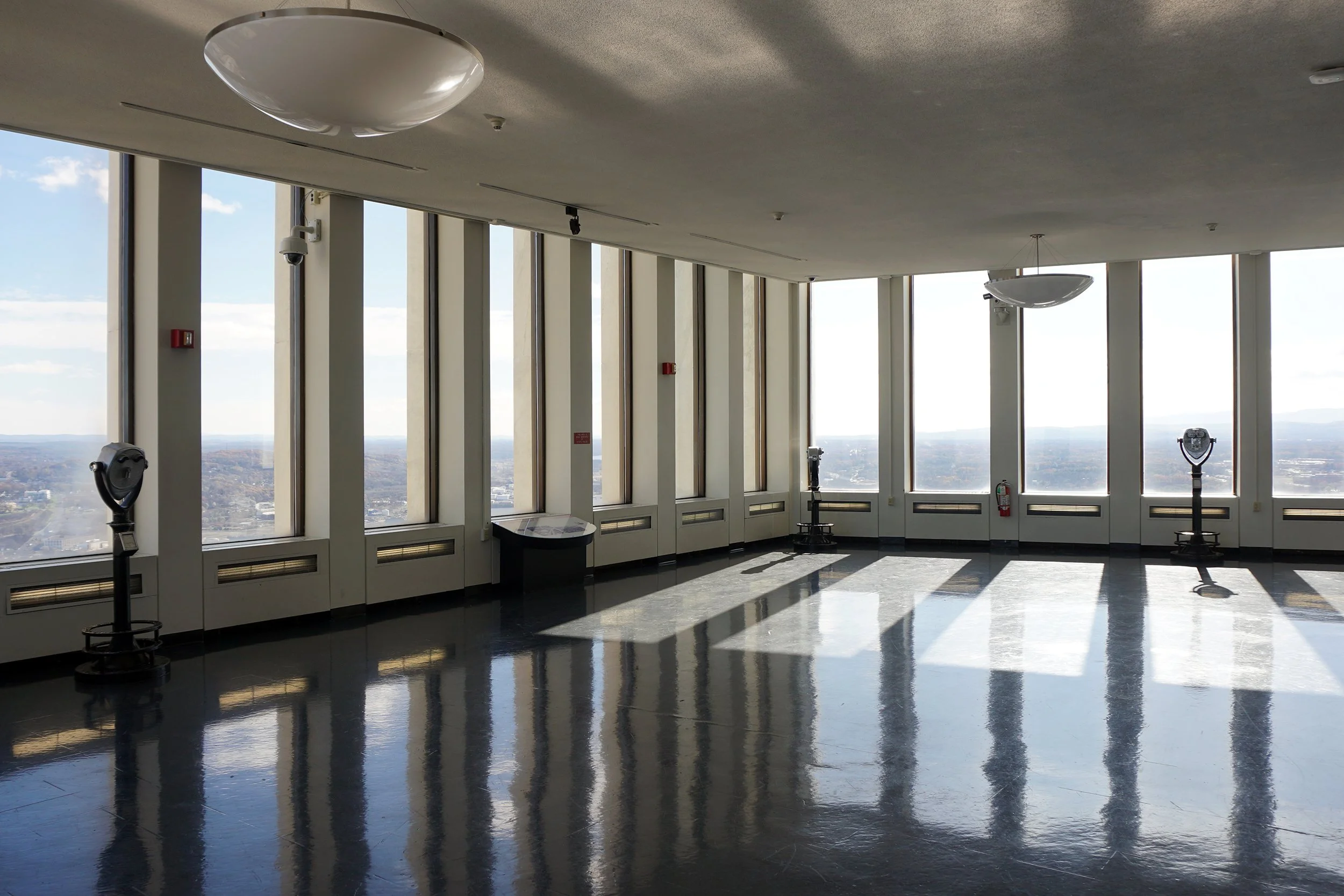 The tallest of those repetitive towers is the Erasmus Corning II Tower, at 44 stories it is the tallest building in New York State (as long as you ignore everything in New York City). At its top level is a free observation deck, a great chance to see the Empire State Plaza, as well as the Empire State itself as well.