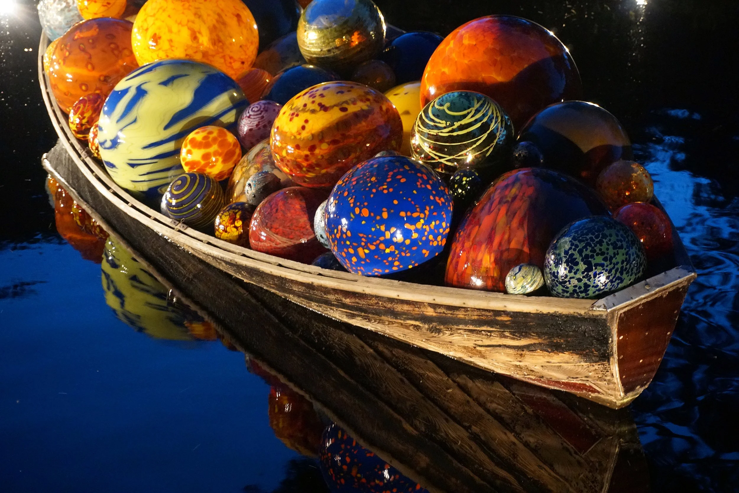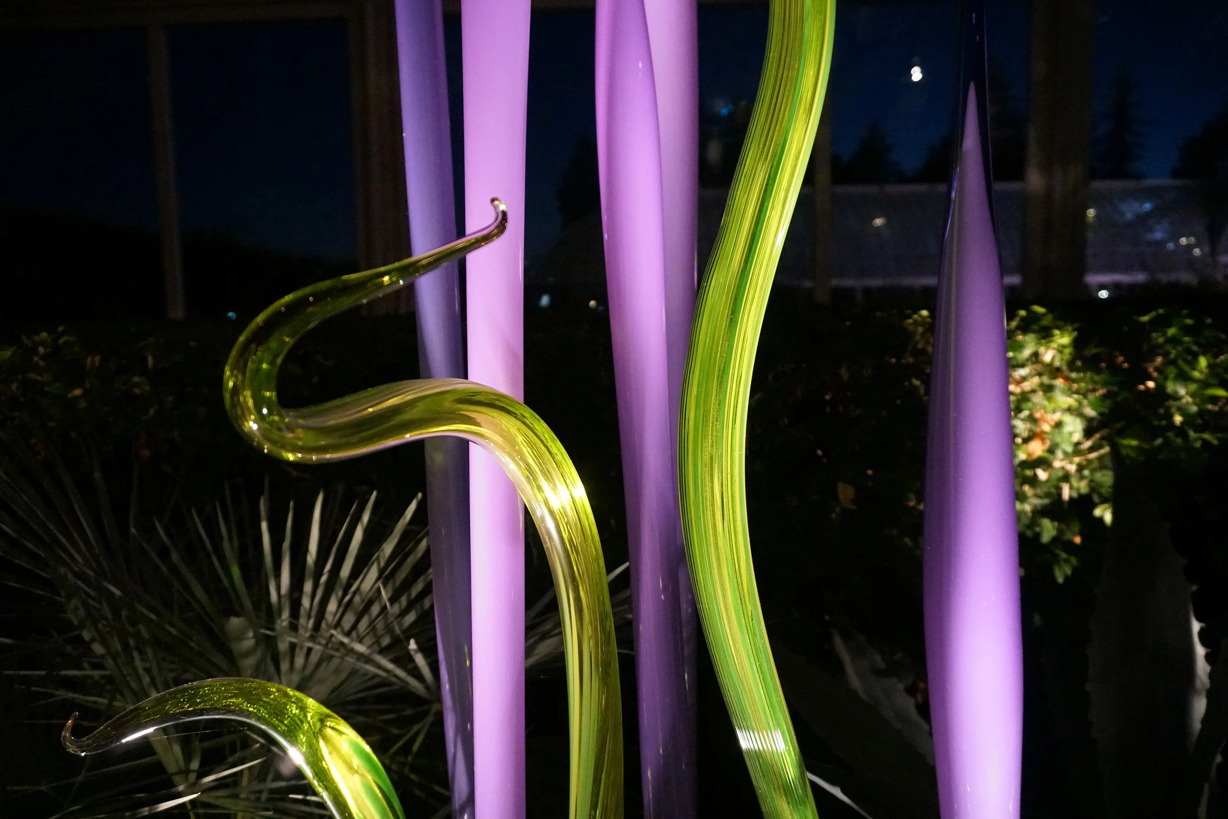 Our very last pictures of Chihuly (or, I guess, CHIHULY) are from CHIHULY Nights (you would have thought they would go all in with the caps and call it CHIHULY NIGHTS instead), a special ticketed attraction where the installations are lit as the rest of the gardens start to disappear into the darkness.