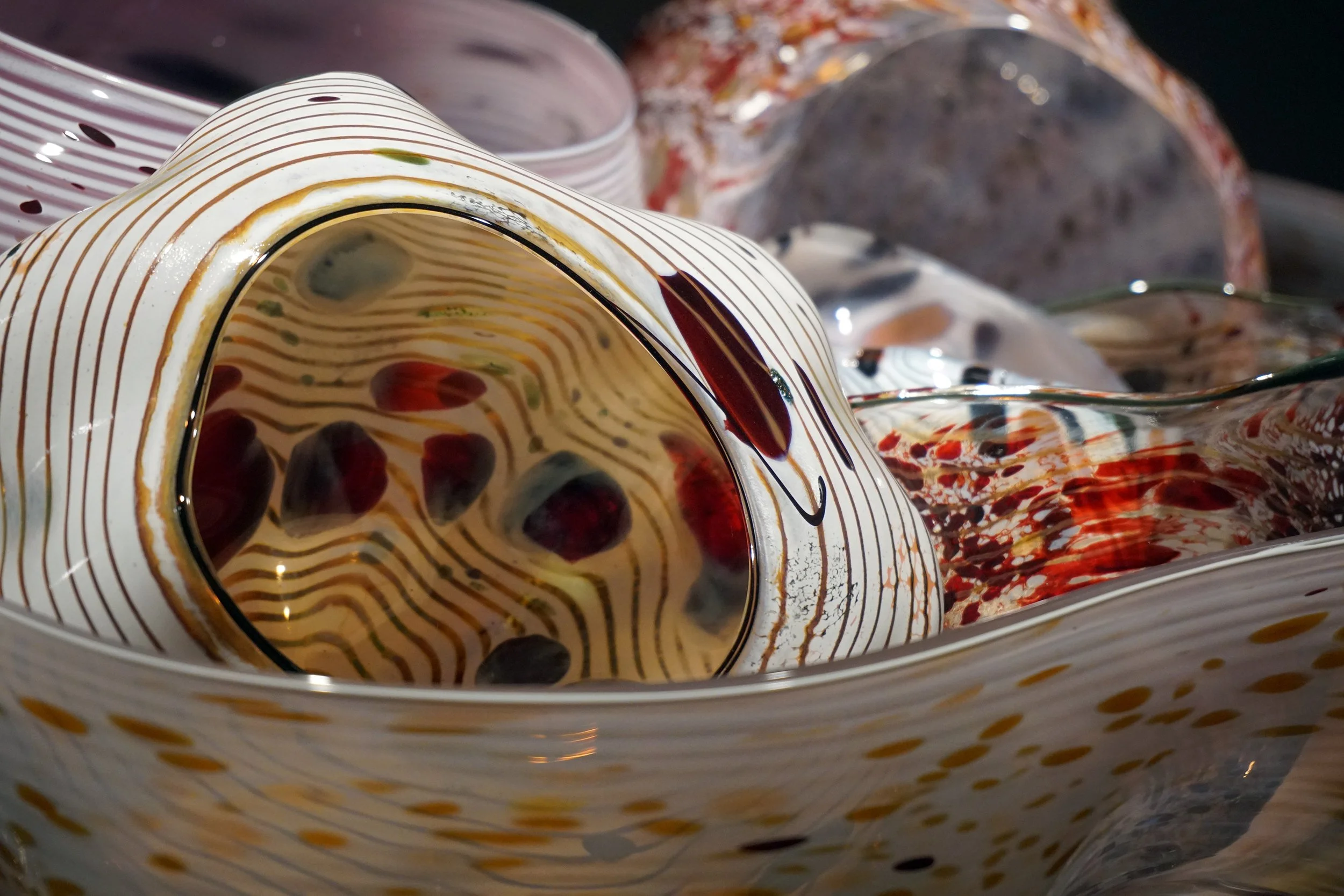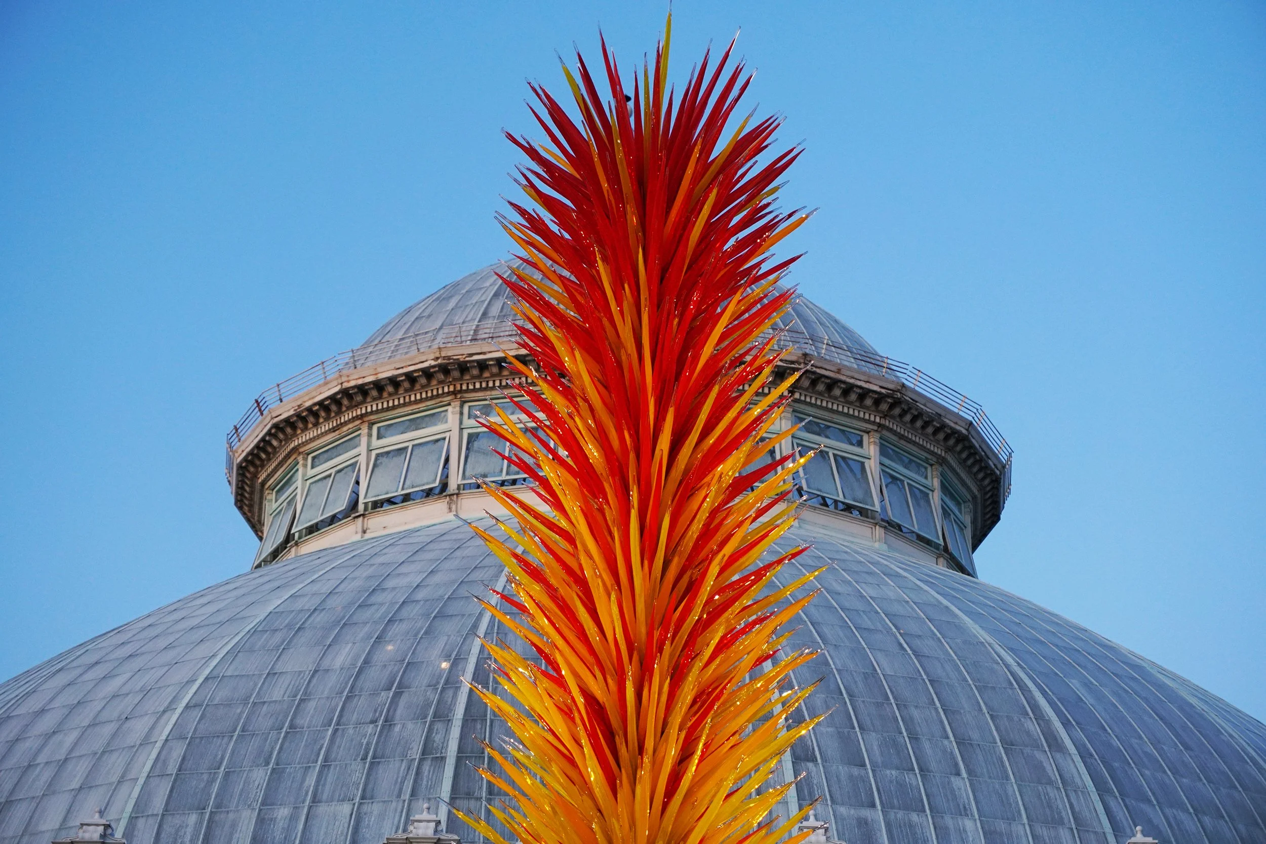 After visiting rooftops and sub, sub, sub basements in Washington DC, the Sistine Chapel in Lower Manhattan, LoDo and the USAFA Chapel in Colorado, Fat Matt’s, the ghost of Nikola Tesla, The Egg, a field of cows searching for the sunlight in the Berkshires, Chicago twice, Ethel M.'s lit up cacti and a garbage truck garage, we find ourselves at last in the Bronx at the New York Botanical Gardens to see the Dale Chihuly exhibit. Called simply CHIHULY (it’s all capitalized, so imagine someone yelling “CHIHULY!” at you every time you see it), the exhibit is a series of works scattered about the gardens, from large scale installations at the conservatory to smaller museum style exhibits (like these) in the library.