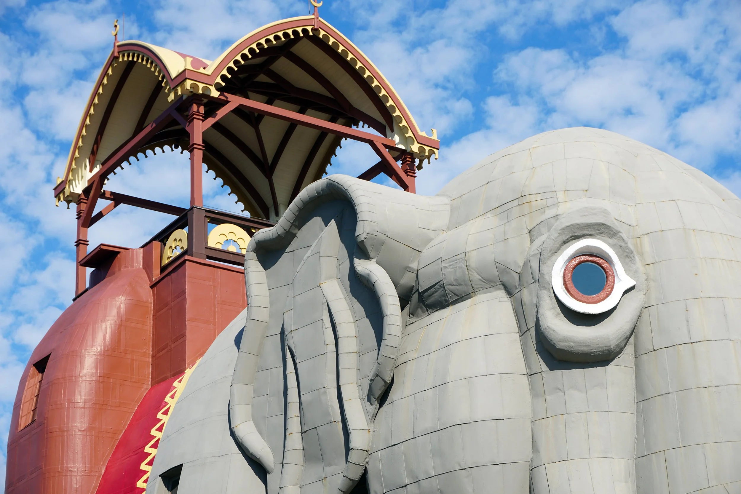 Our in depth tour of Lucy the Elephant ends with a constructed panorama view from the top of her back, as Margate and the super flat horizon of southern New Jersey extends out, past the Parkway and the Pine Barrens and into infinity.