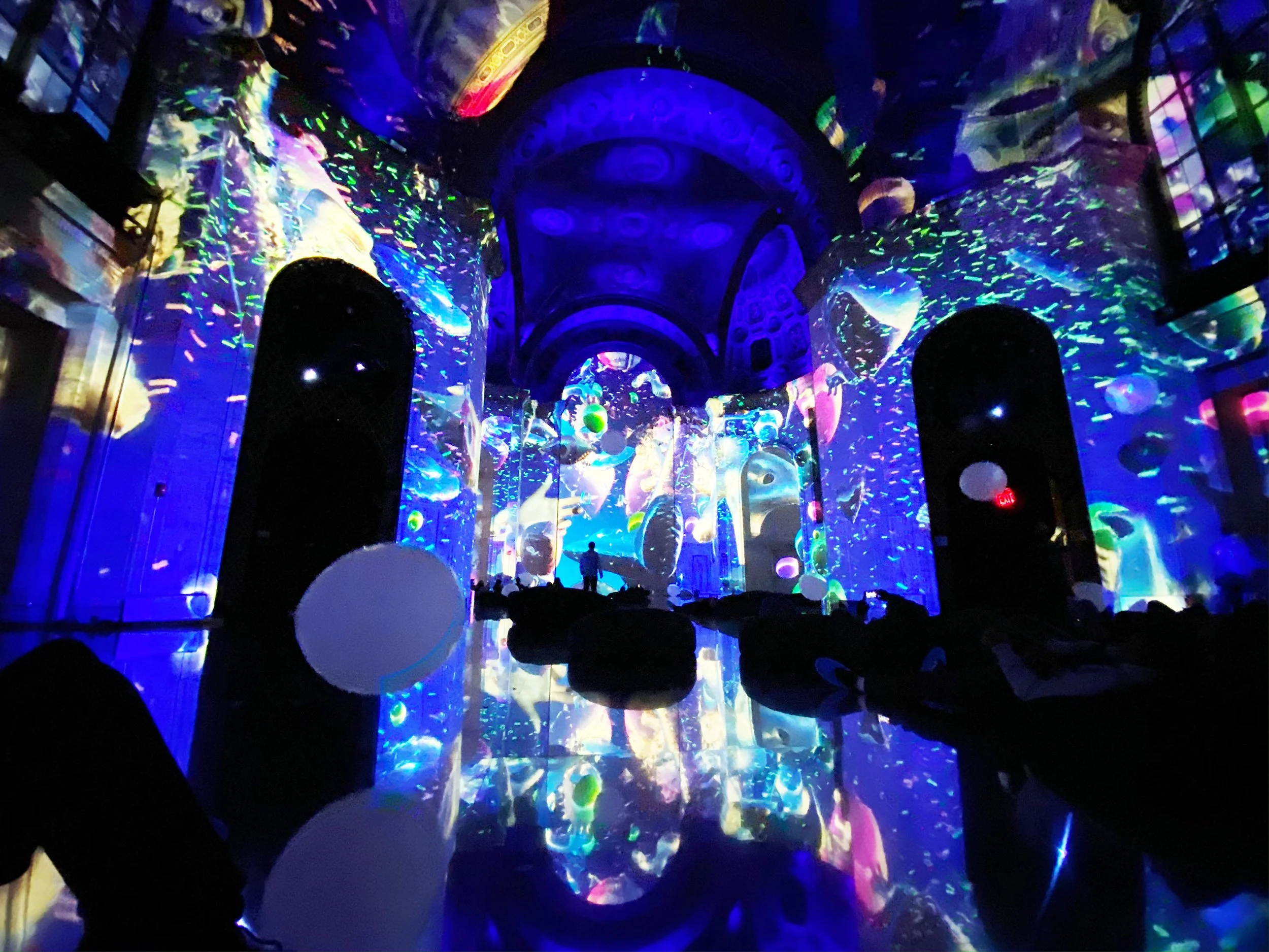 There’s no overthinking here. This is the lobby of the Cunard Building on one of the first blocks of Broadway downtown, one of the most architecturally magnificent interiors in the city. However, since too much is not enough, the lobby was transformed into a ticketed attraction by Moment Factory called “SuperReal.” They mirrored the floors and hid mapped projectors all over the place, creating a looping, often mesmerizing show that felt (sometimes) like you were in someone else’s dreams. And if that wasn’t enough, there were also a scattering of giant white balls that bounced around and almost never bounced where you wanted them to go. Fun.